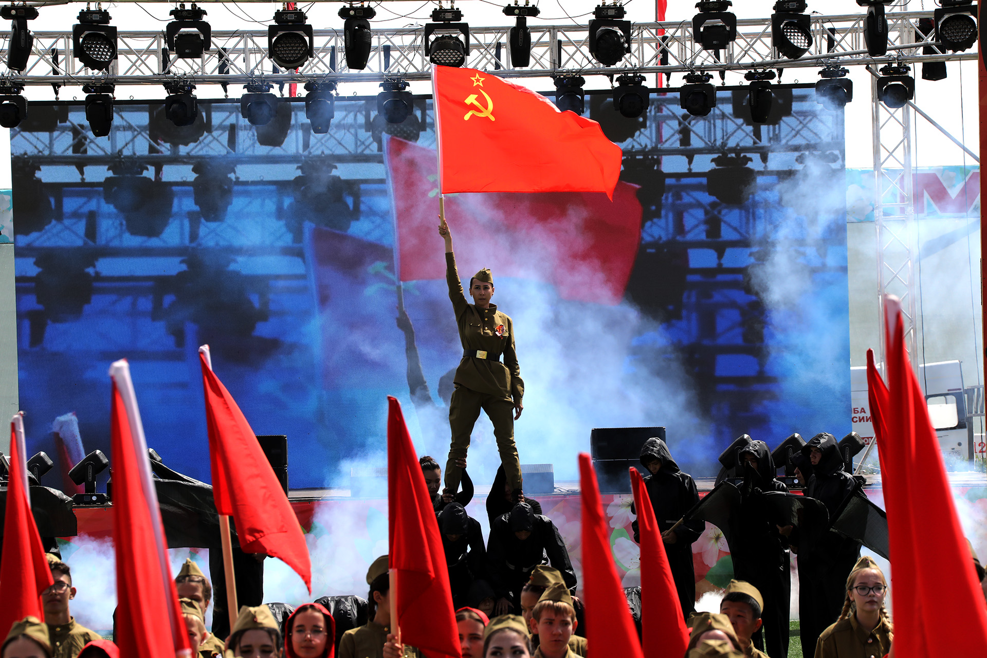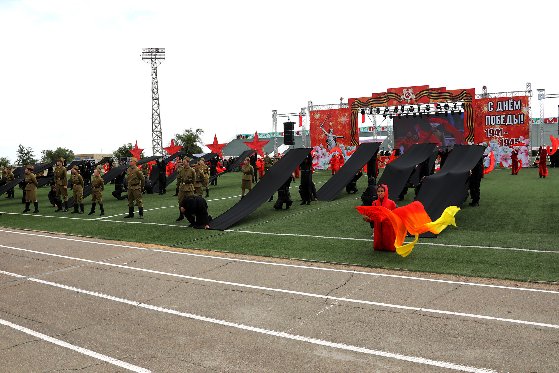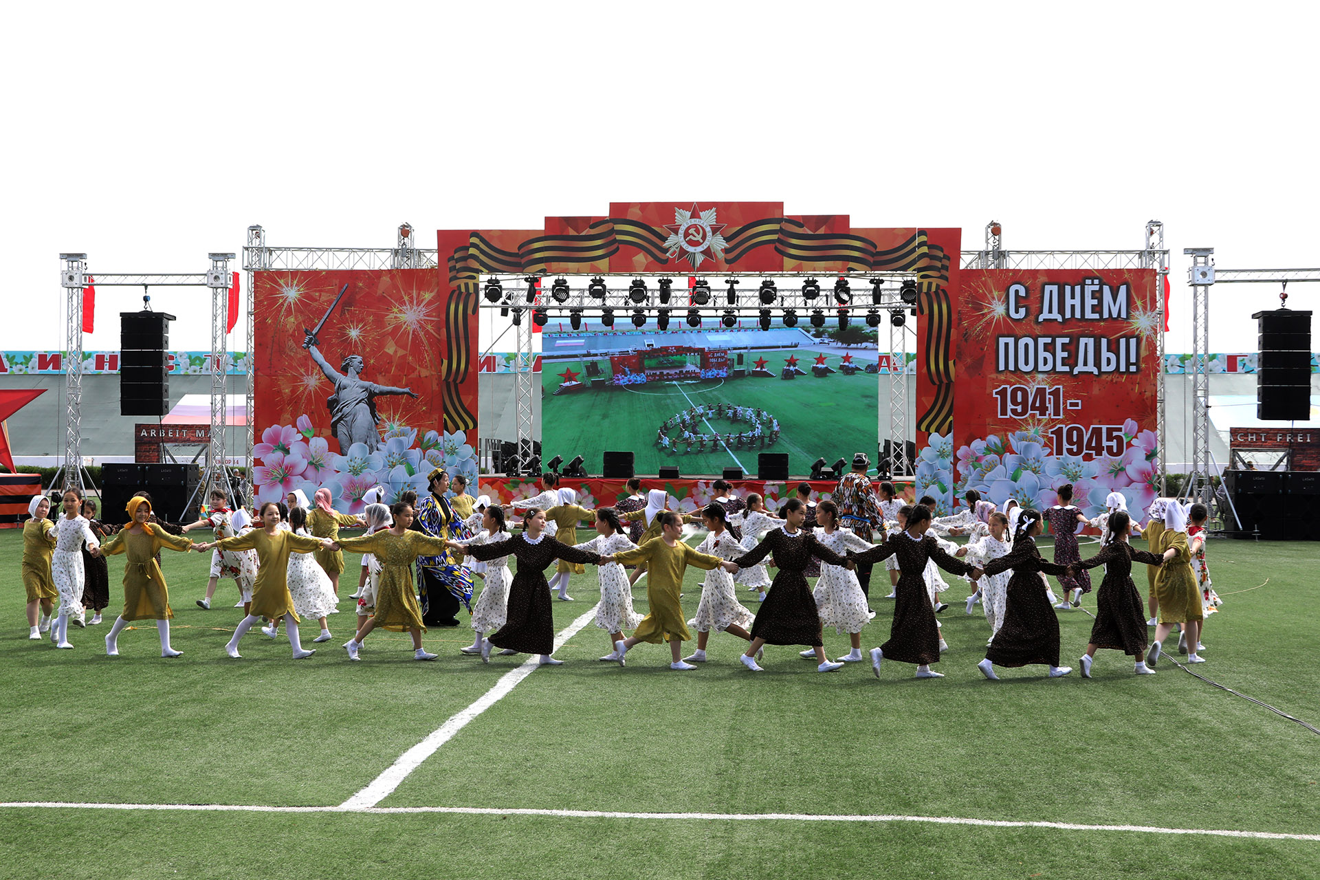 Завершением торжественных мероприятий, посвящённых 80-й годовщине Победы в Великой Отечественной войне на стадионе «Десятилетие», стала театрализованная литературно-музыкальная композиция «Поклонимся великим тем годам», подготовленная коллективом Центра развития творчества детей и юношества им. В.М. Комарова.