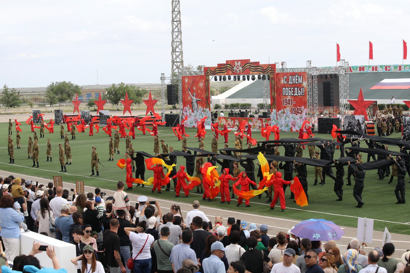 Финальным аккордом прозвучала песня «День Победы», исполненная солистами Центра творчества. На поле вышли все участники представления – объединённые общей памятью и благодарностью поколению победителей.