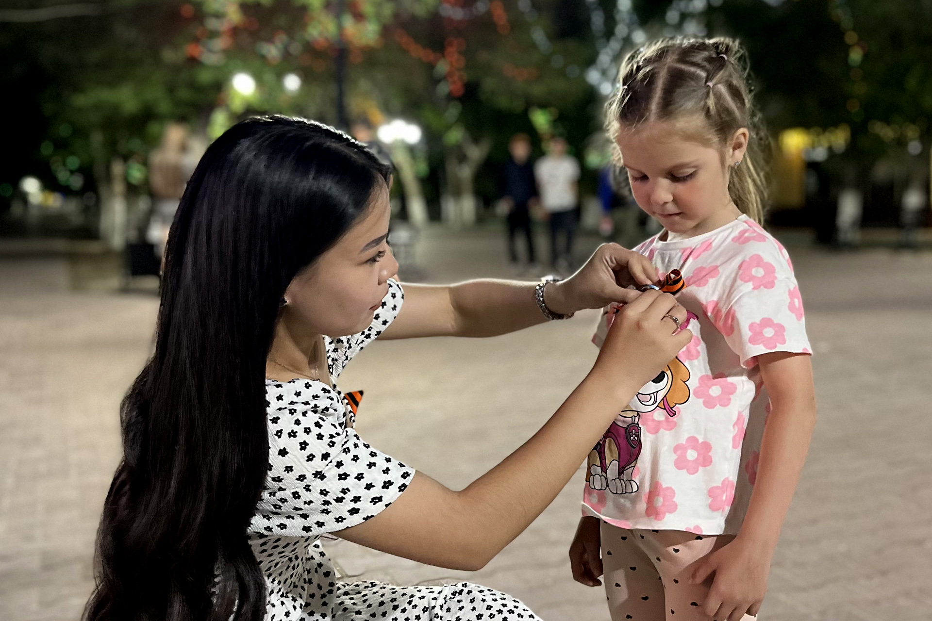 Массовая раздача георгиевских лент была организована молодежным центром «Будущее Байконура». Они не первый год изготавливаются и распространяются среди населения силами сотрудников и волонтеров. В преддверии празднования 80-летия Победы в Великой Отечественной войне было роздано более 2 тыс. шт.
