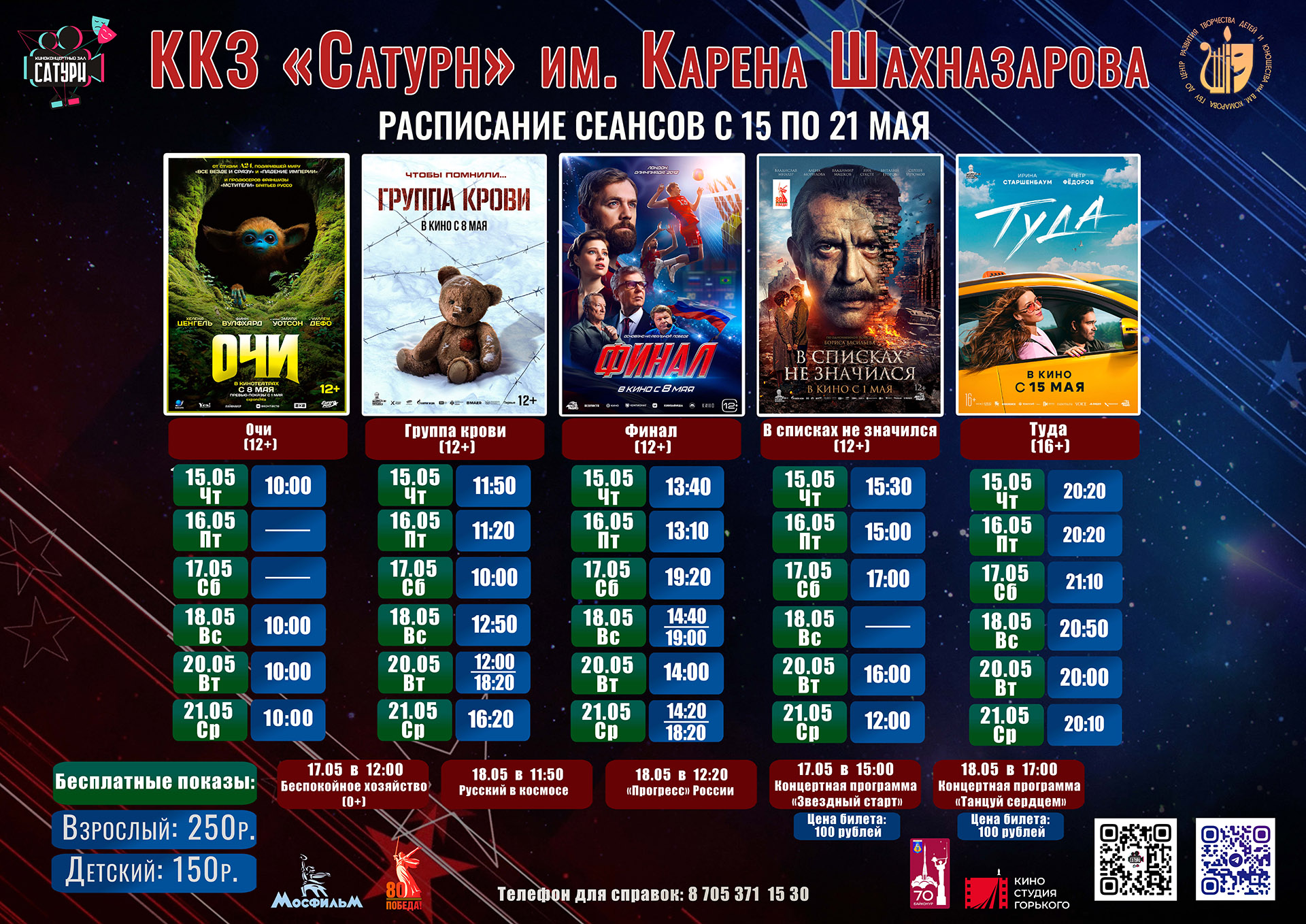 14.05.2025  Киноконцертный зал «Сатурн» приглашает жителей и гостей города на просмотр фильмов