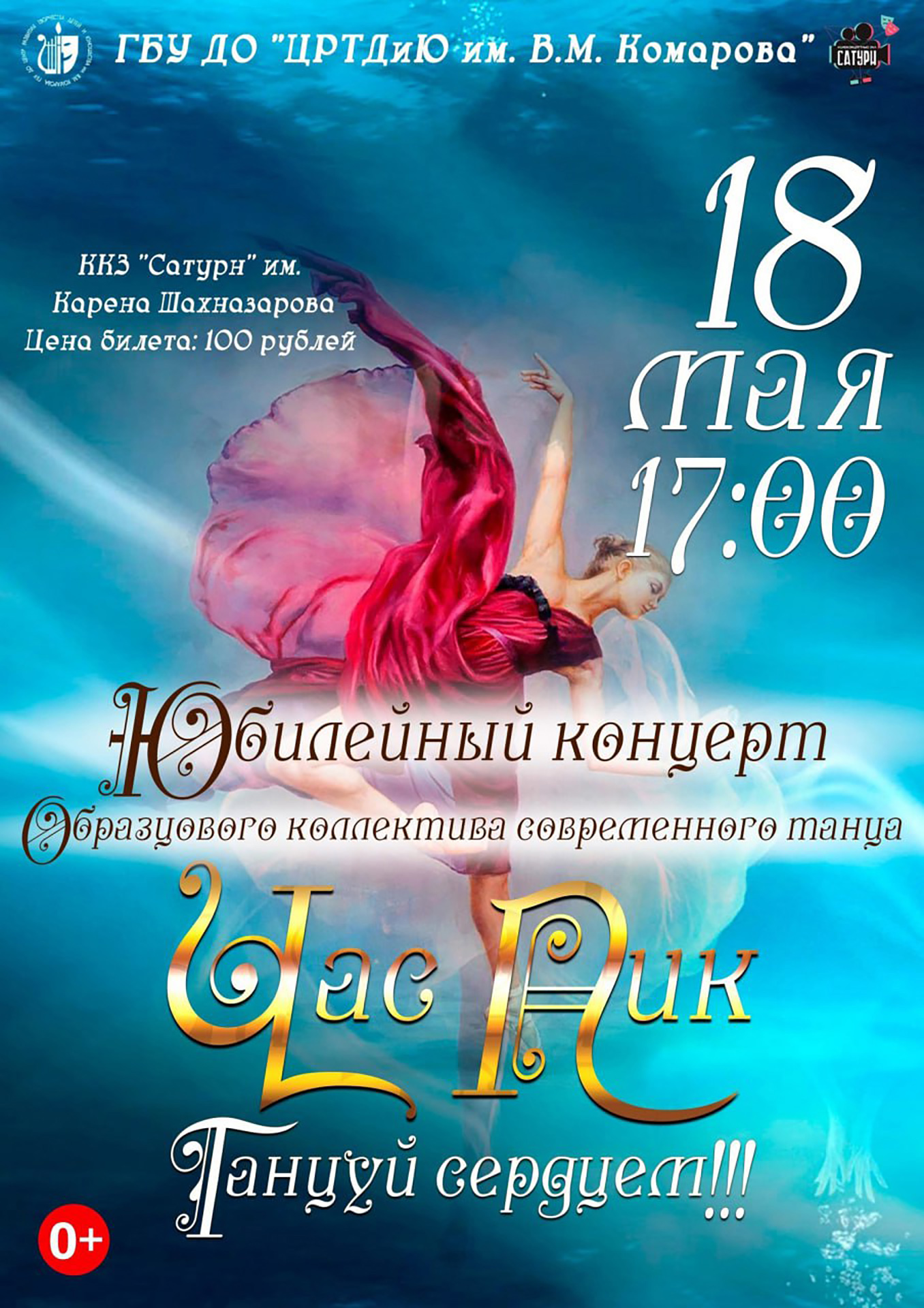 В 17:00 состоится юбилейный концерт образцового коллектива современного танца «Час Пик». Место проведения – киноконцертный зал «Сатурн» им. Карена Шахназарова.
