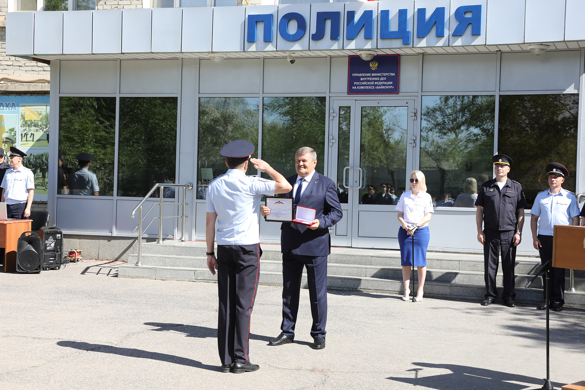19 мая в Байконуре прошло торжественное мероприятие, посвящённое 60-летию со дня образования органов внутренних дел в посёлке Ленинский. В этот день поздравить сотрудников Управления МВД России с профессиональным юбилеем прибыл глава администрации города Константин Бусыгин. В мероприятии также принял участие первый заместитель главы Тимур Вербицкий.