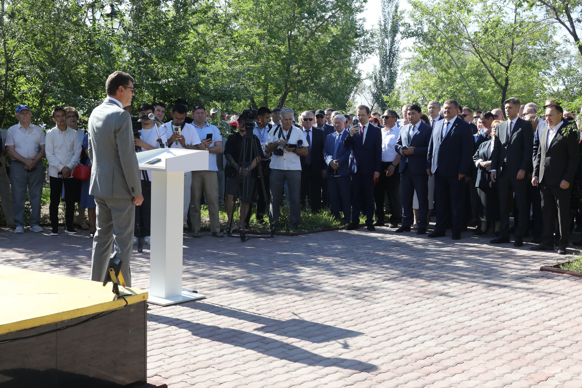 Специальный представитель президента Республики Казахстан на комплексе «Байконур» Кайрат Нуртай обратился к собравшимся на двух языках – казахском и русском. Он от всей души поздравил собравшихся с 70-летием космодрома и города, поблагодарил ветеранов за любовь к городу и верность космодрому. Кайрат Нуртай отметил, что развитие Байконура остаётся на контроле президентов двух наших стран. Обращаясь к ветеранам специальный представитель президента Республики Казахстан выделил, что на Байконуре свято чтут традиции, заложенные первопроходцами.