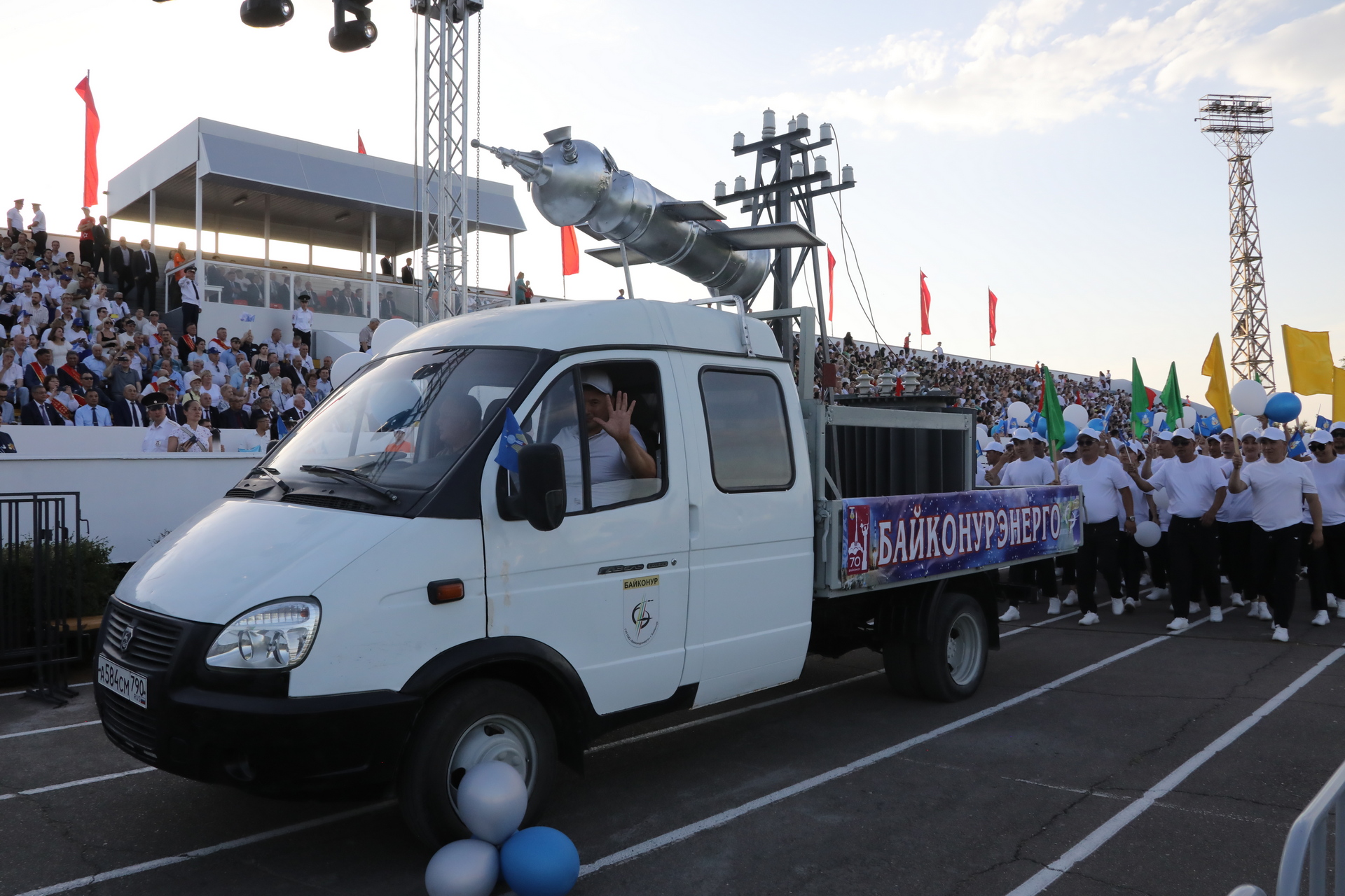 Вечером, 2 июня, на стадионе «Десятилетие» состоялось торжественное шествие «Мы – Байконурцы!», приуроченное к 70-летию со дня основания космодрома и города Байконур. Шествие стало ярким стартом вечернего праздничного концерта и объединило в едином порыве ветеранов космодрома и города, почётных жителей Байконура, работников филиалов предприятий ракетно-космической отрасли, учреждений и организаций Байконура, индивидуальных предпринимателей и зрителей.