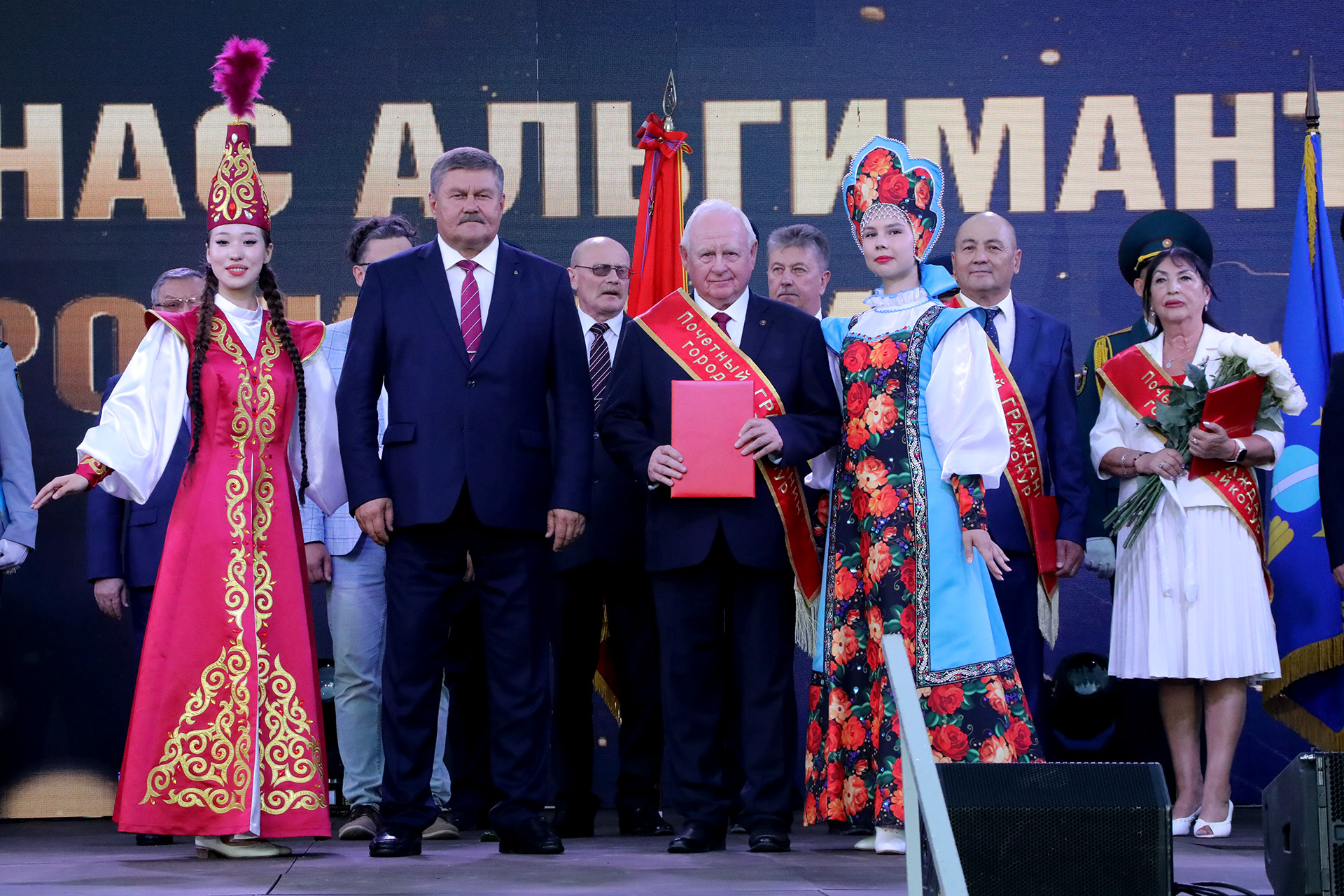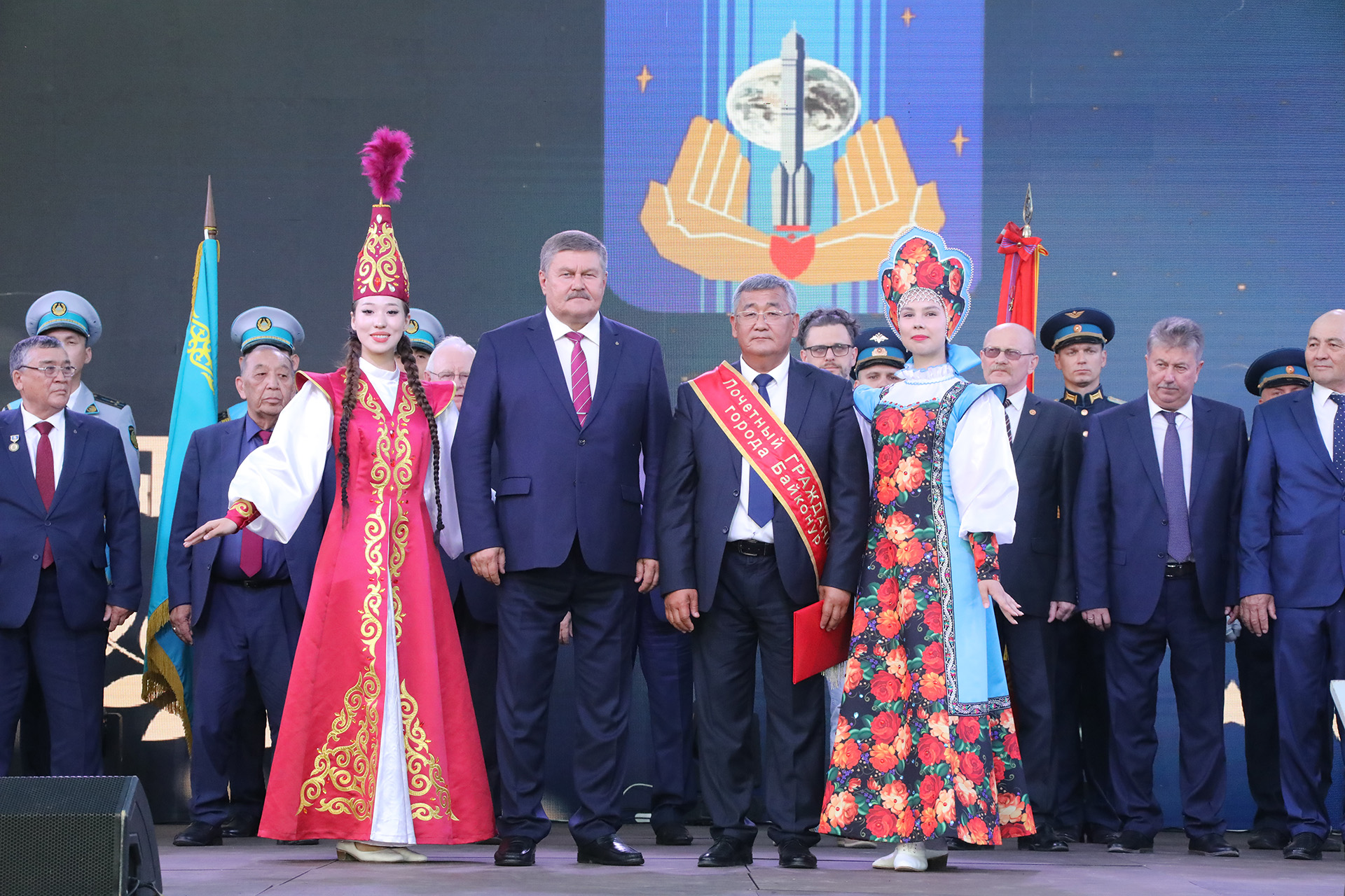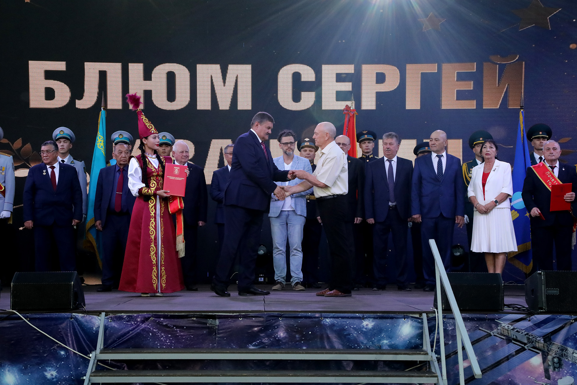 Праздничные мероприятия, посвящённые 70-летию космодрома и города Байконур, продолжились особым и волнительным моментом – церемонией присвоения звания «Почётный гражданин города Байконур», которую провёл глава администрации города Константин Бусыгин.
