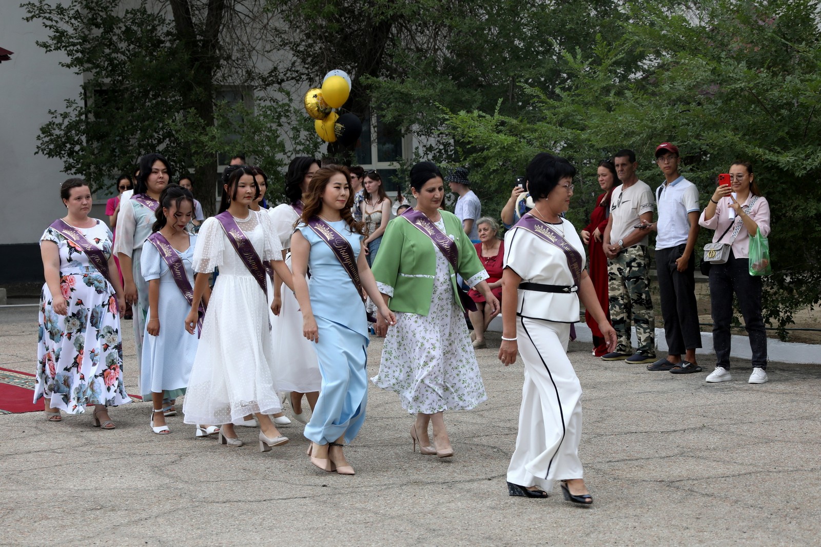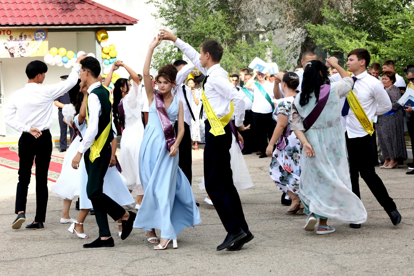 17 июня студенты выпускных групп Байконурского индустриального техникума простились с руководством, сотрудниками и педагогами образовательного учреждения, прошедшими с ними этот непростой путь к знаниям. В этом учебном году завершили обучение 70 студентов. Для них – это начало нового периода, профессиональной зрелости и независимости, для педагогов – волнение за дальнейшую судьбу своих воспитанников и надежда на то, что она сложится удачно. Прибывших на мероприятие почётных гостей: заместителя главы администрации города Байконур Николая Адасёва, генерального директора ГУП «Жилищное хозяйство» Александра Осипяна, начальника Управления образованием Елену Ким, начальника Управления культуры, молодёжной политики, туризма и спорта Жанар Ким встретила с караваем выпускница группы ПВ – 49 Айдана Алмагамбетова.