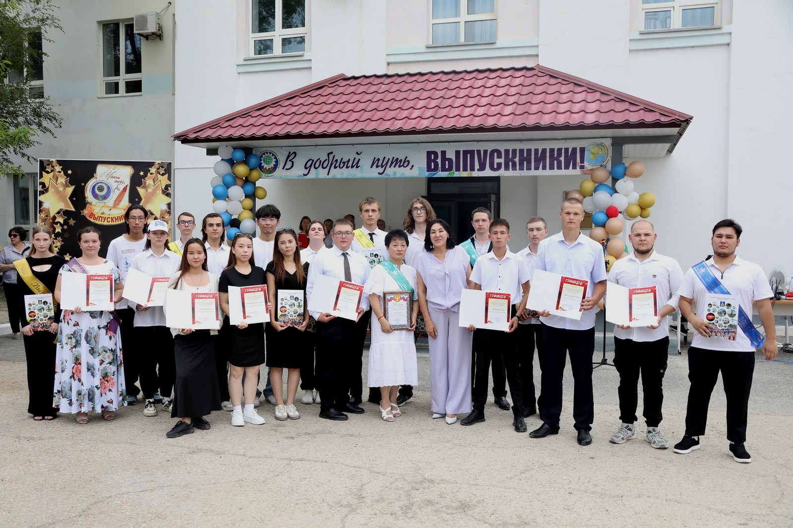 Заместитель главы администрации Николай Адасёв поздравил выпускников с окончанием обучения, пожелав им успехов в профессиональной деятельности. Он также наградил почётными грамотами классных руководителей выпускных групп, мастеров производственного обучения: Лаззат Амандосову, Данияра Тулегенова, Болатбека Муратова, Нурсултана Жаркынбекова и педагога дополнительного образования Анжелику Хен за высокий профессионализм и большой вклад в обучение и воспитание молодёжи в 2024/2025 учебном году. После чего Николай Адасёв объявил благодарность выпускникам: Анастасии Березовской, Руслану Жанабаеву, Анастасии Ганже, Алексею Белякову и Сабрине Акмагамбетовой за высокие результаты в учёбе, активное участие в мероприятиях, повышающих имидж техникума, помощь наставникам и целеустремлённость в достижении поставленных целей.