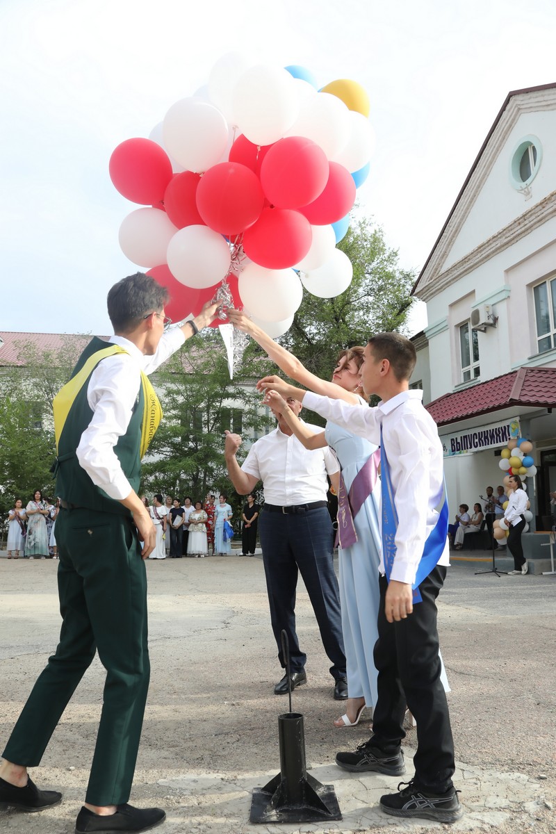 Торжественное мероприятие сопровождалось концертной программой, подготовленной силами педагогов, выпускников и студентов техникума. В завершение церемонии выпускники Анастасия Березовская, Руслан Жанабаев и Ермек Акылбекулы под бурные аплодисменты запустили в небо композицию из разноцветных шаров с табличкой «Выпуск-2025».