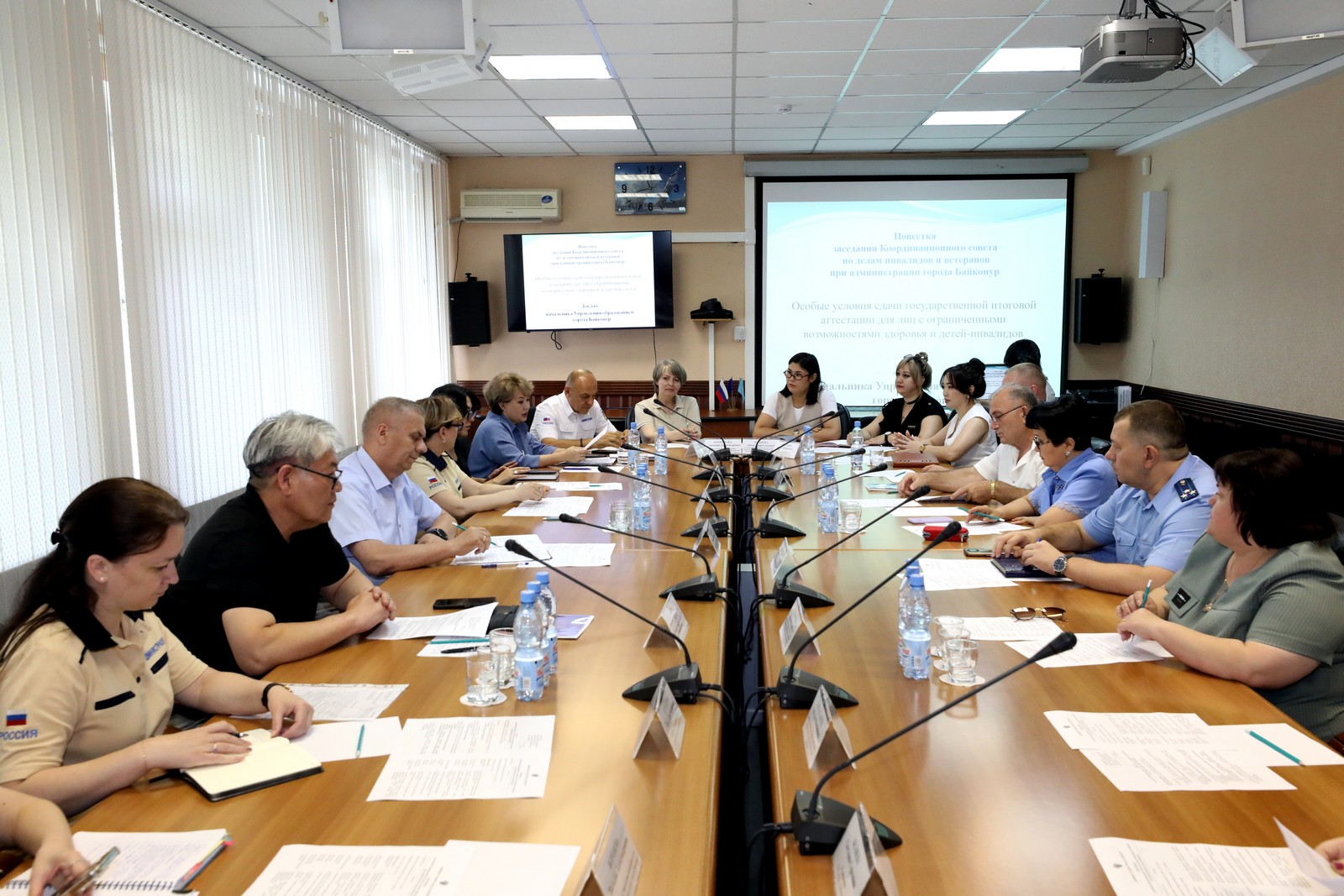 19 июня в городской администрации состоялось заседание Координационного совета по делам инвалидов и ветеранов при администрации города Байконур (далее – Координационный совет). Заседание проводилось под председательством заместителя главы администрации города Байконур Николая Адасёва. В заседании приняли участие руководители и представители органов исполнительной власти, прокуратуры комплекса «Байконур», организаций и общественных объединений, входящих в состав Координационного совета.