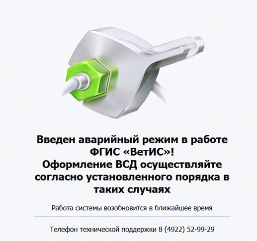 1. Использовать бумажные ВСД. В течение 24 часов после окончания аварийного режима уведомить об указанном перемещении оператора ФГИС ВетИС, направив копию документа на электронную почту admin@fsvps.ru, а также в сектор по осуществлению полномочий в области ветеринарии на электронную почту veterinaria@baikonuradm.ru.