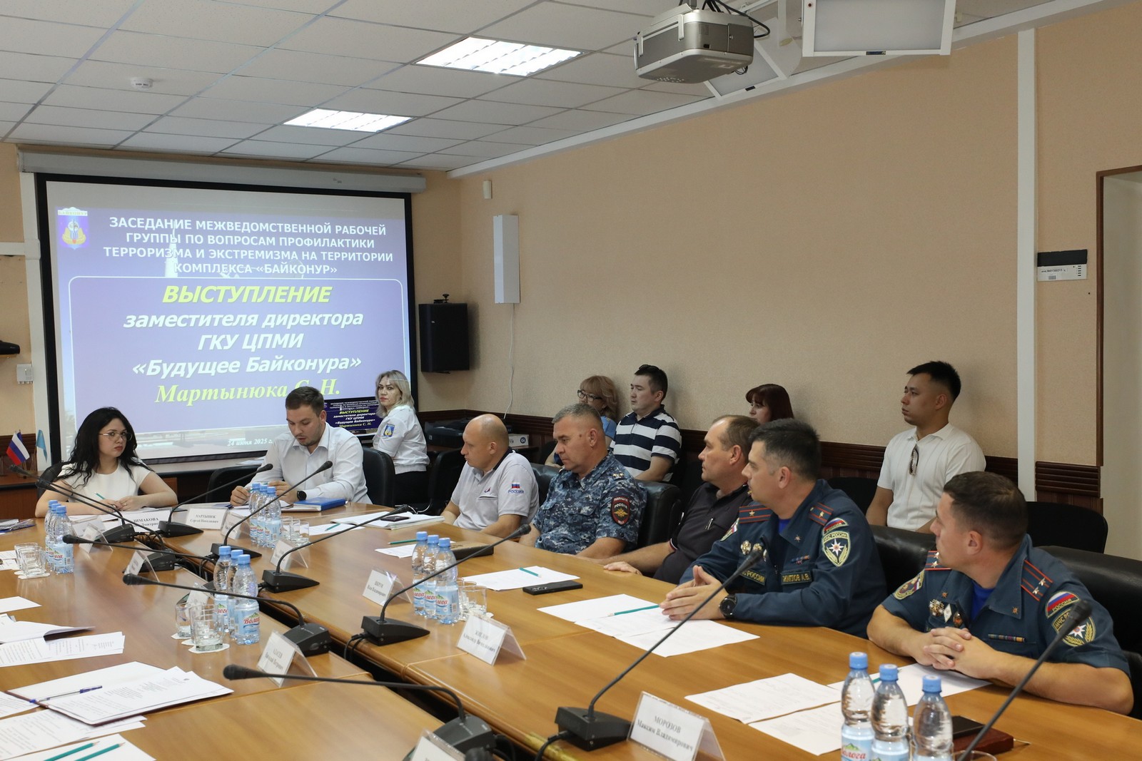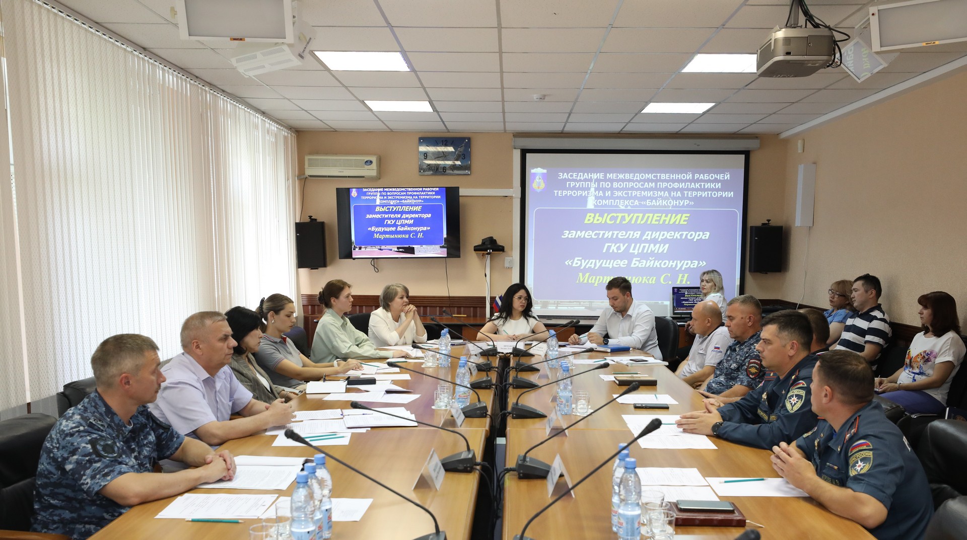 24 июня в администрации города Байконура состоялось заседание Межведомственной рабочей группы по вопросам профилактики терроризма и экстремизма на территории комплекса «Байконур» за I полугодие 2025 года (МРГ, заседание). В заседании МРГ приняли участие руководители и должностные лица территориальных органов федеральных органов исполнительной власти, функционирующих на комплексе «Байконур», филиала АО «ЦЭНКИ» - КЦ «Южный», администрации города, представители Управления культуры, молодежной политики, туризма и спорта (УКМПТиС), Управления образованием города Байконур, Государственного казенного учреждения «Центр поддержки молодежных инициатив «Будущее Байконура» (ГКУ ЦПМИ «Будущее Байконура»), а также приглашенные лица.