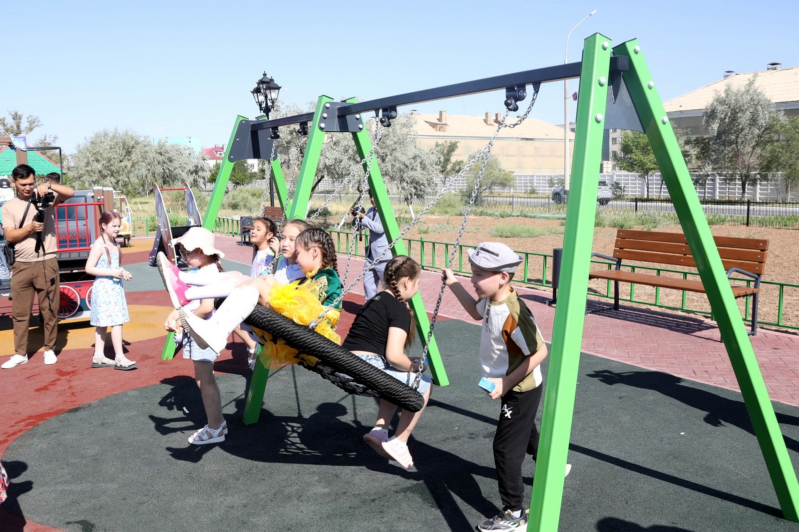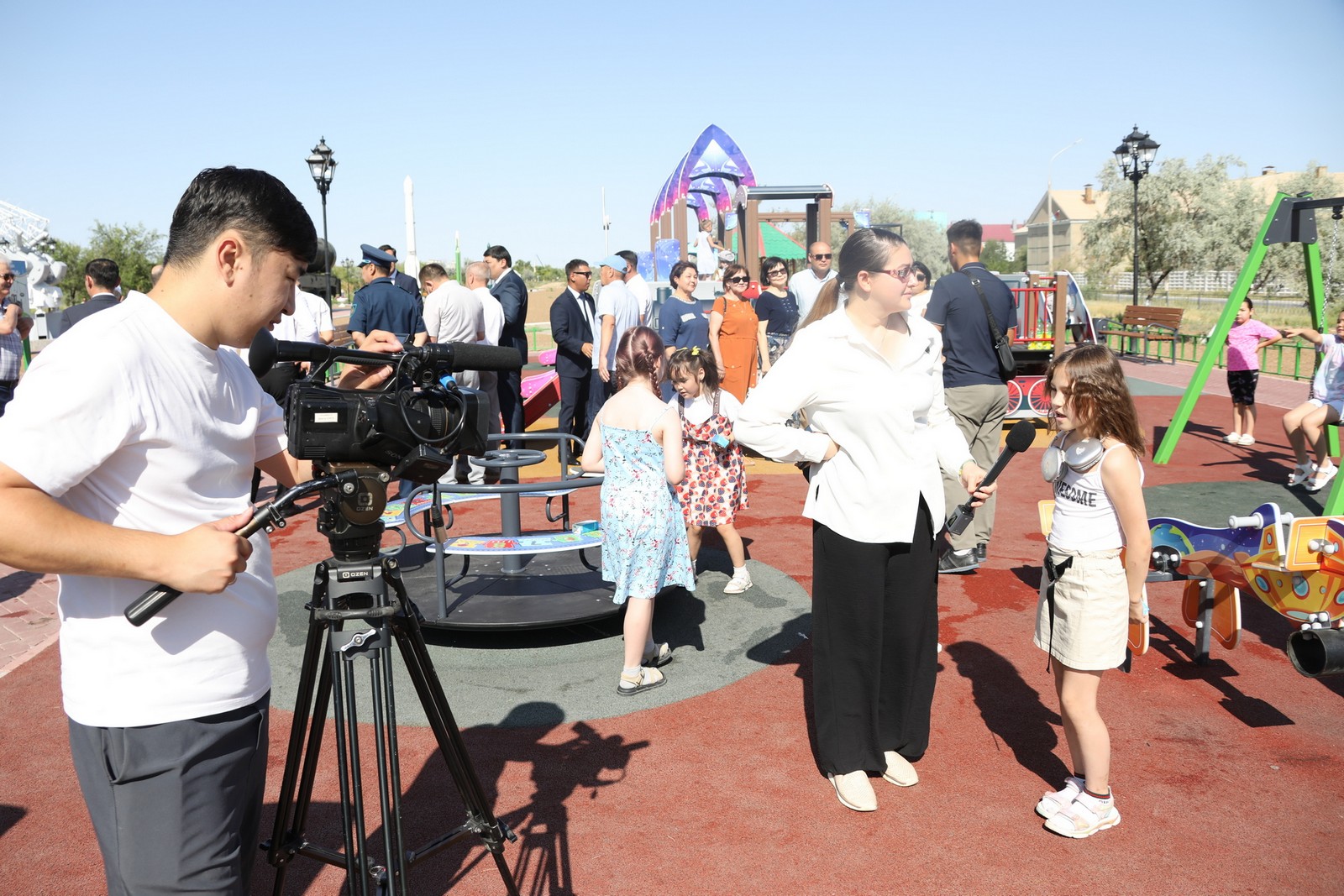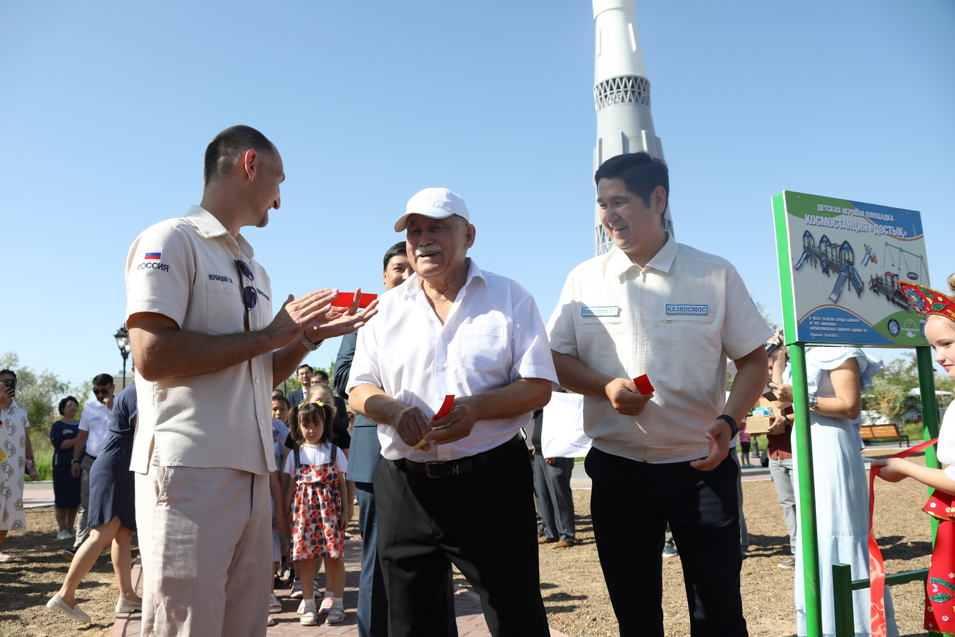 Сегодня утром в парке имени Шубникова состоялось официальное открытие детской игровой площадки. В мероприятии приняли участие Тимур Вербицкий – первый заместитель главы администрации города, Николай Адасев – заместитель главы администрации, Кайрат Нуртай – специальный представитель президента Республики Казахстан на комплексе «Байконур», Баубек Оралмагамбетов – председатель аэрокосмического комитета Министерства цифрового развития, инноваций и аэрокосмической промышленности Республики Казахстан.