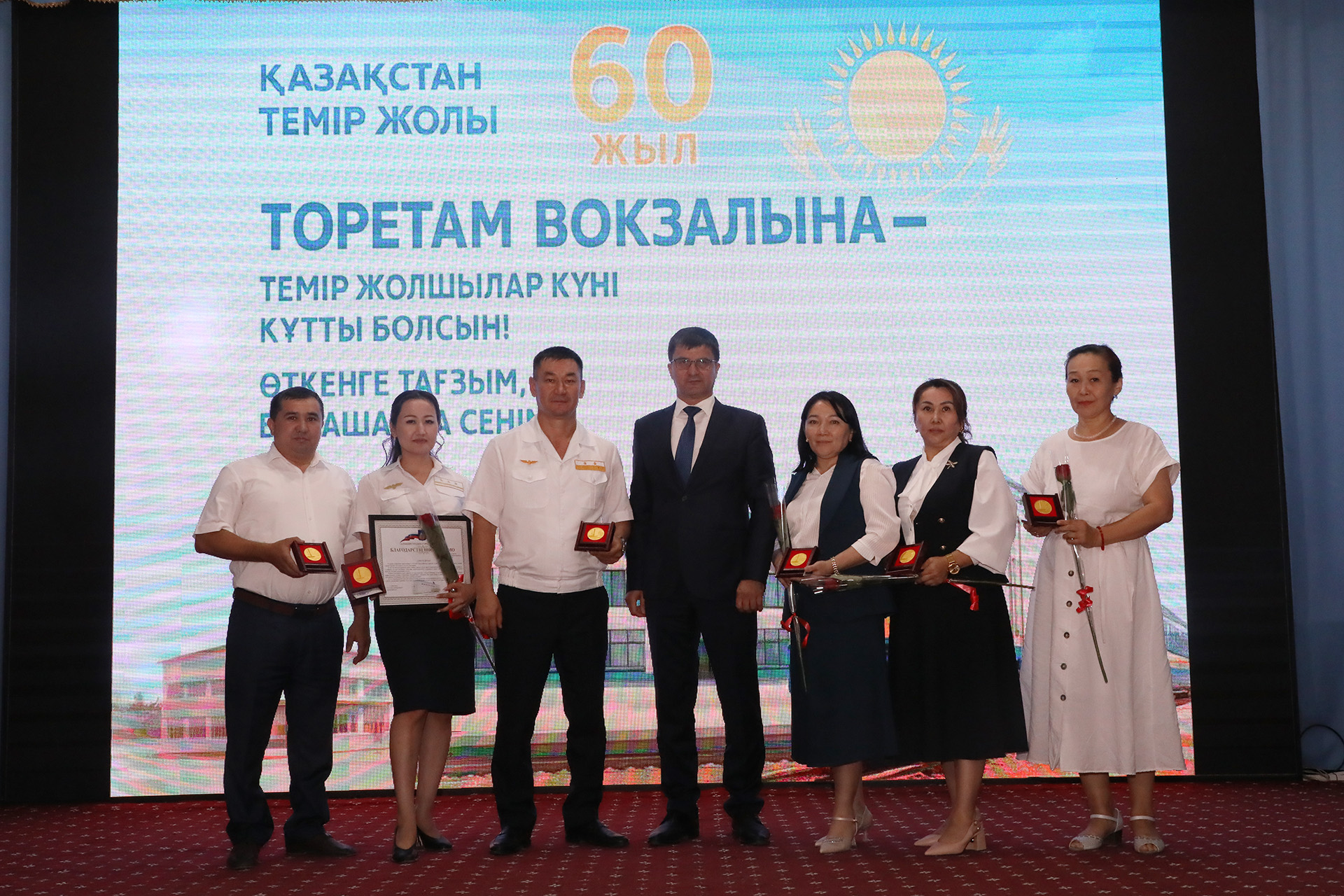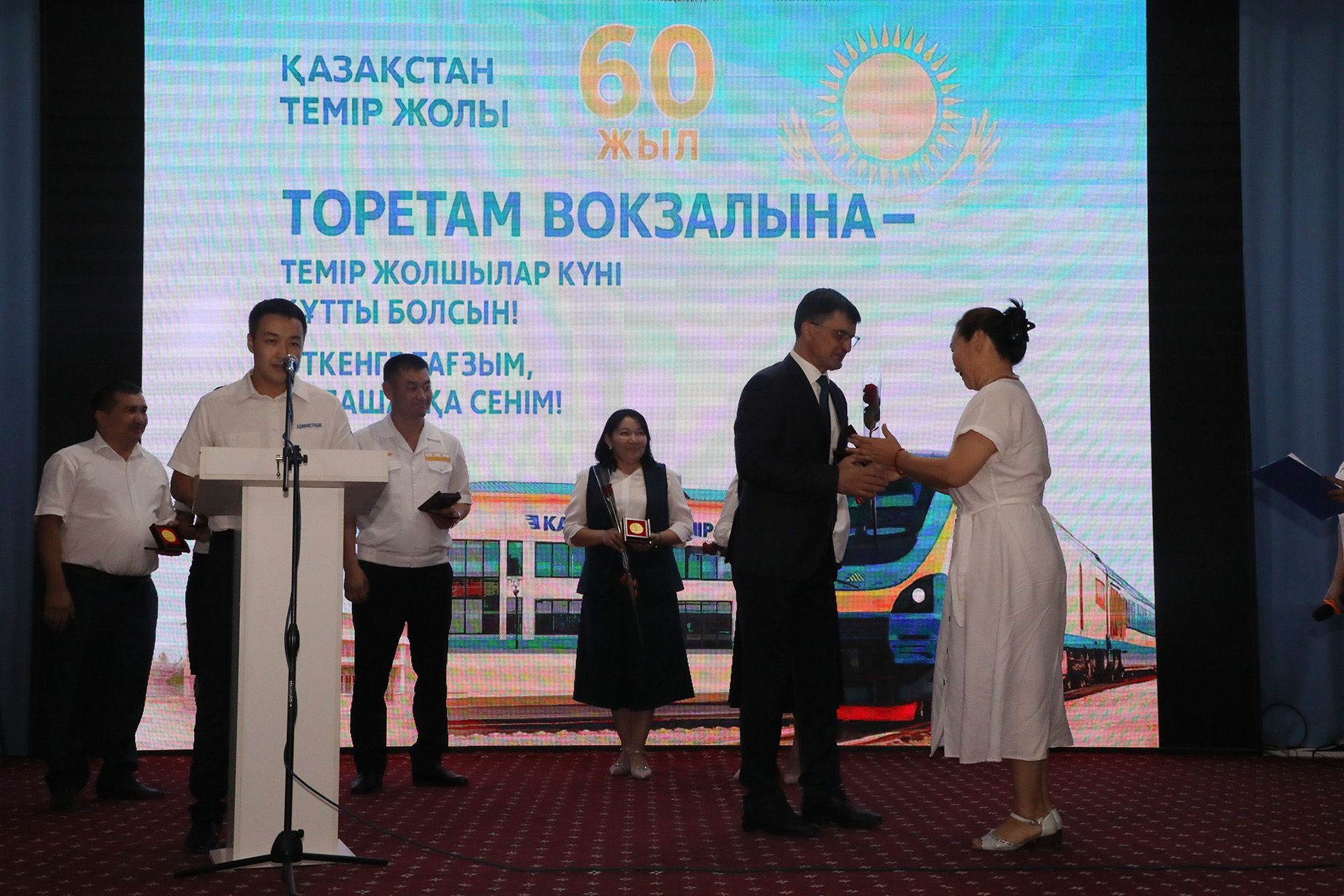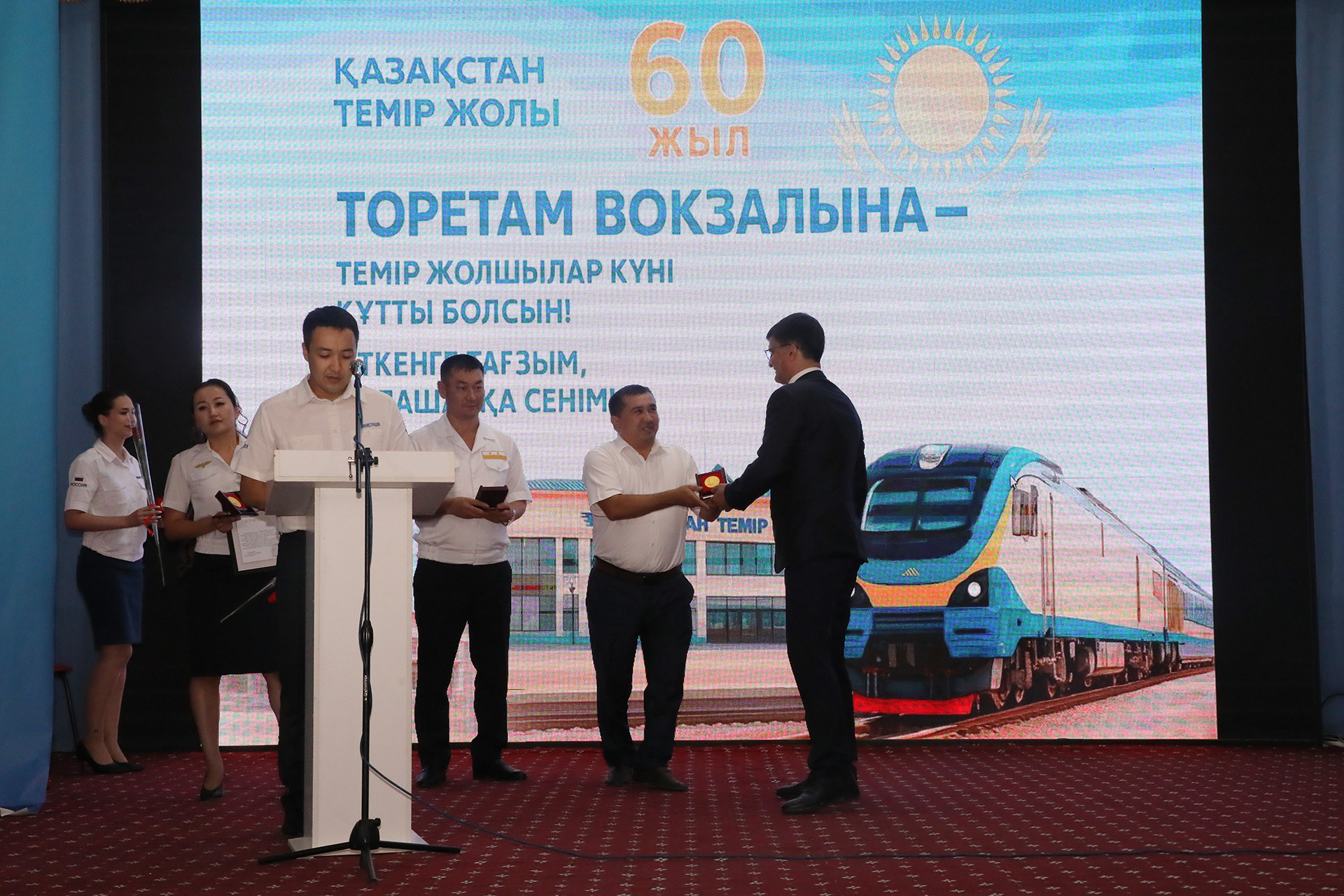За значительный вклад в транспортное обеспечение жизнедеятельности города директору филиала АО «Национальная компания «КТЖ» – «Кызылординское отделение магистральной сети» Ерболу Саулебекову, начальнику вокзала станции Торетам Меруерт Абдраман, а также ряду сотрудников были вручены памятные настольные медали «70 лет Байконуру».