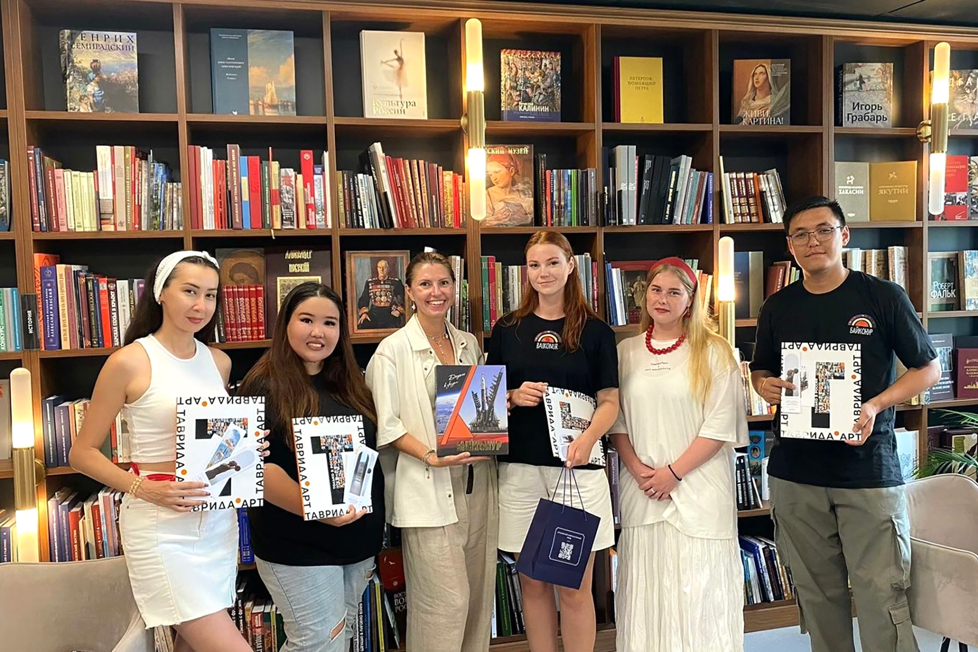 В знак благодарности за теплый прием и сотрудничество, молодые деятели культуры Байконура подарили сувениры и передали книгу «Байконур – дорога к звёздам» организатору фестиваля – проректору по учебной части АНО «Таврида.АРТ» Инне Олейниковой (ранее – руководитель департамента образовательных технологий АНО «Таврида.АРТ»). Книга заняла своё почётное место в книжном фонде библиотеки «Таврида.АРТ».