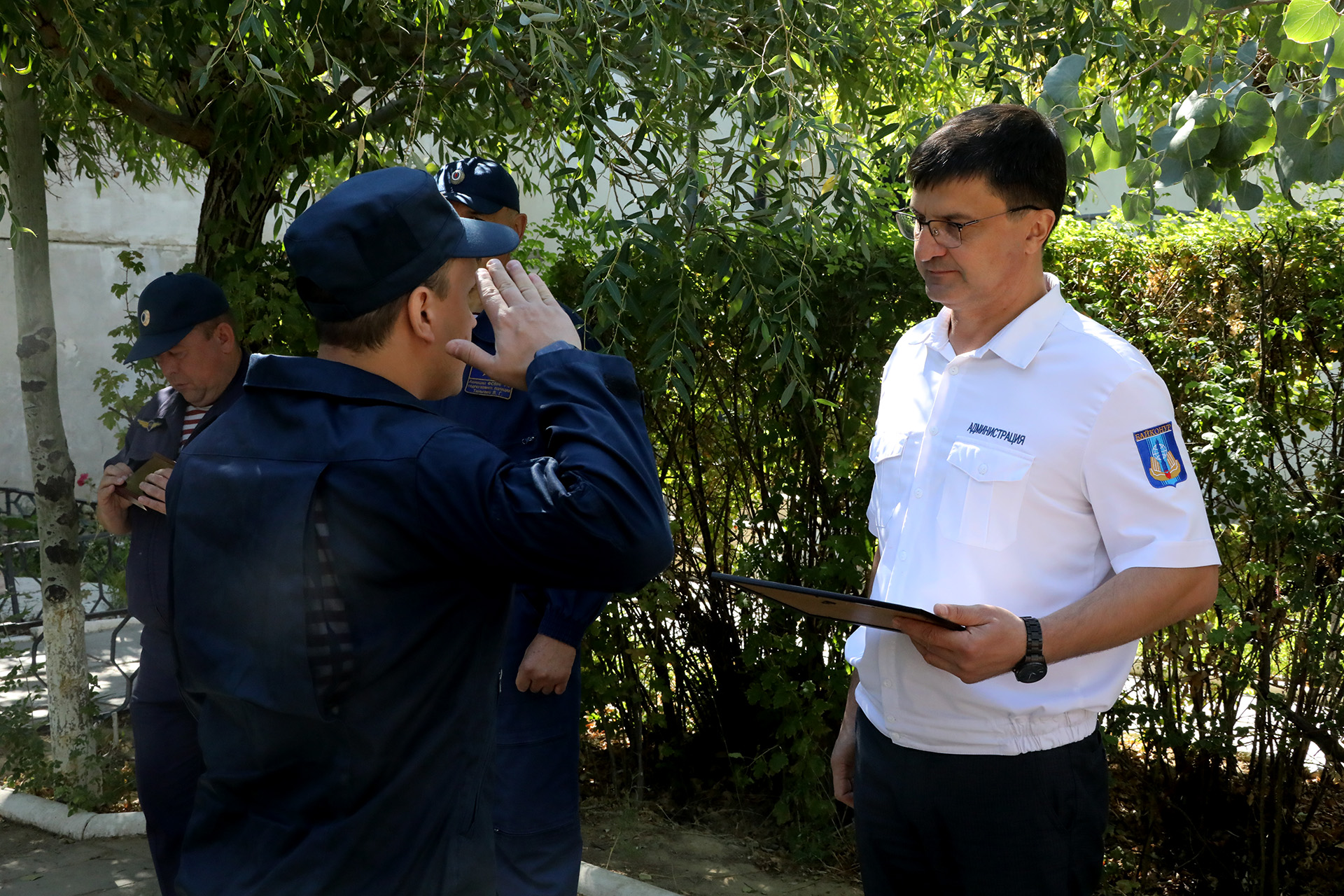 За значительный личный вклад в обеспечение охраны общественного порядка на комплексе «Байконур», добросовестное исполнение должностных обязанностей и достигнутые положительные результаты в служебной деятельности ряд сотрудников и представителей руководящего состава награждены серебряными памятными знаками «Байконур», настольными медалями «70 лет Байконуру» и благодарностями главы администрации.
