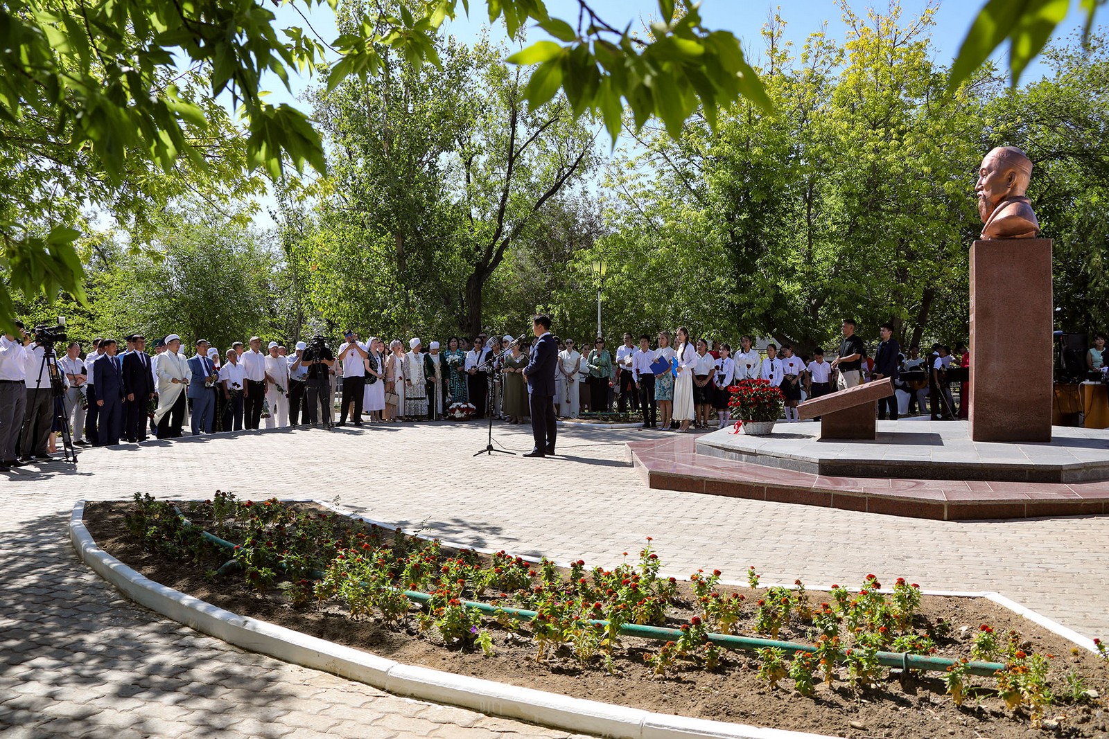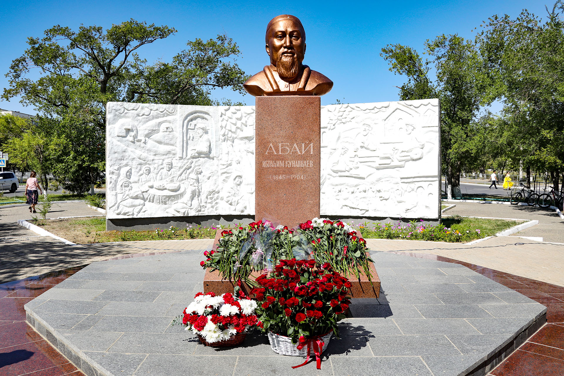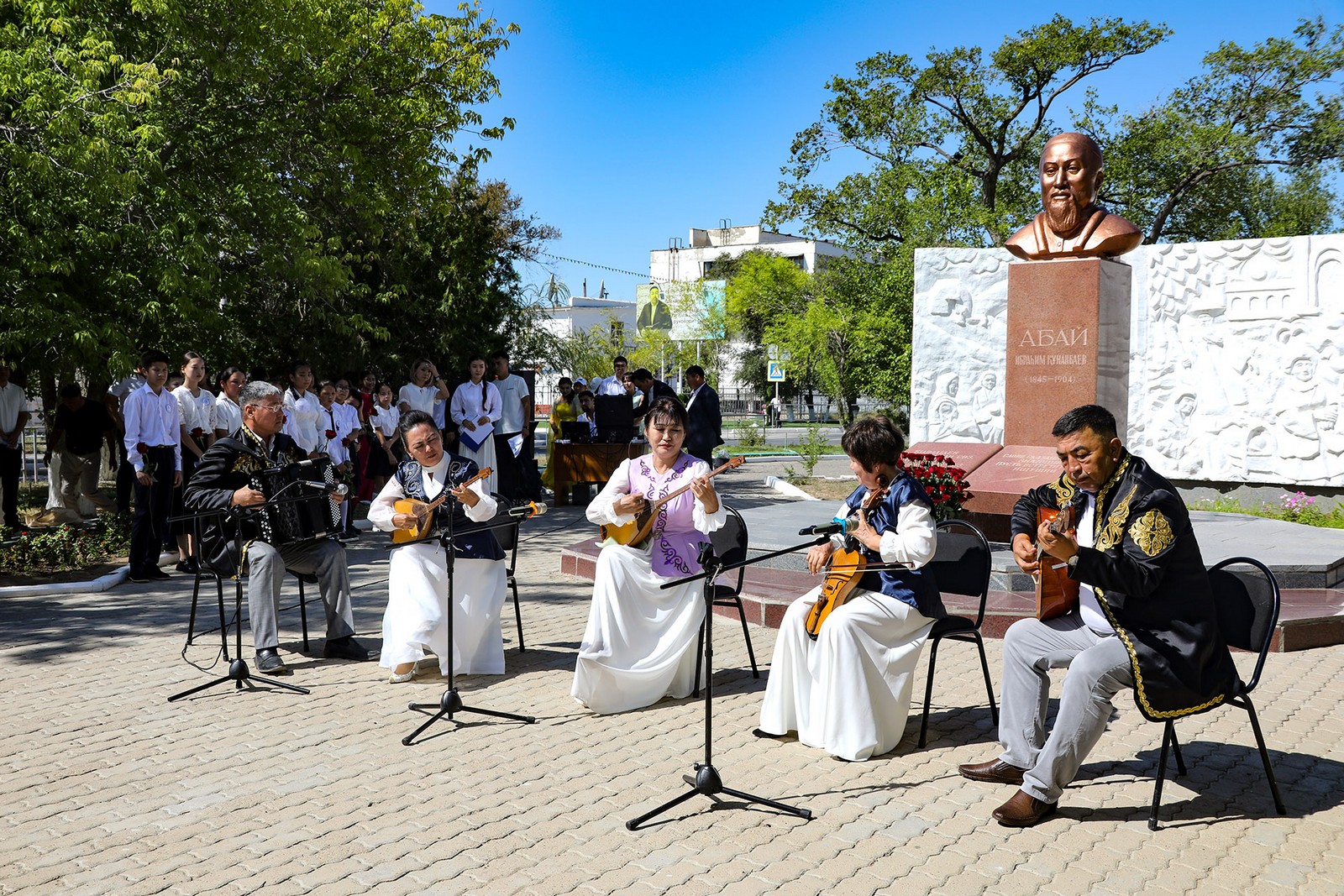 В преддверии памятной даты, 8 августа, у памятника Абаю Кунанбаеву состоялся торжественный митинг, в котором приняли участие официальные лица, аксакалы, школьники и жители Байконура.