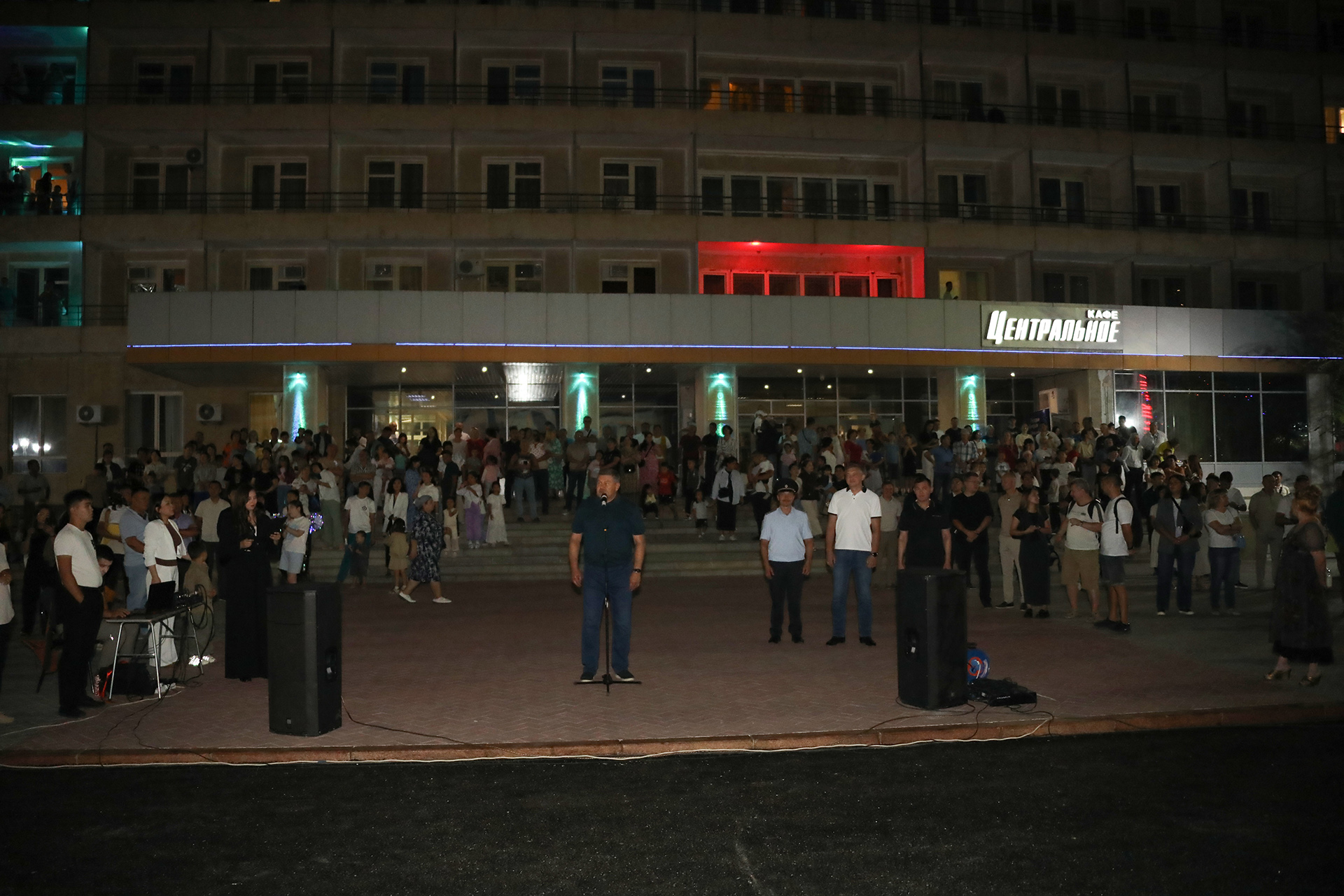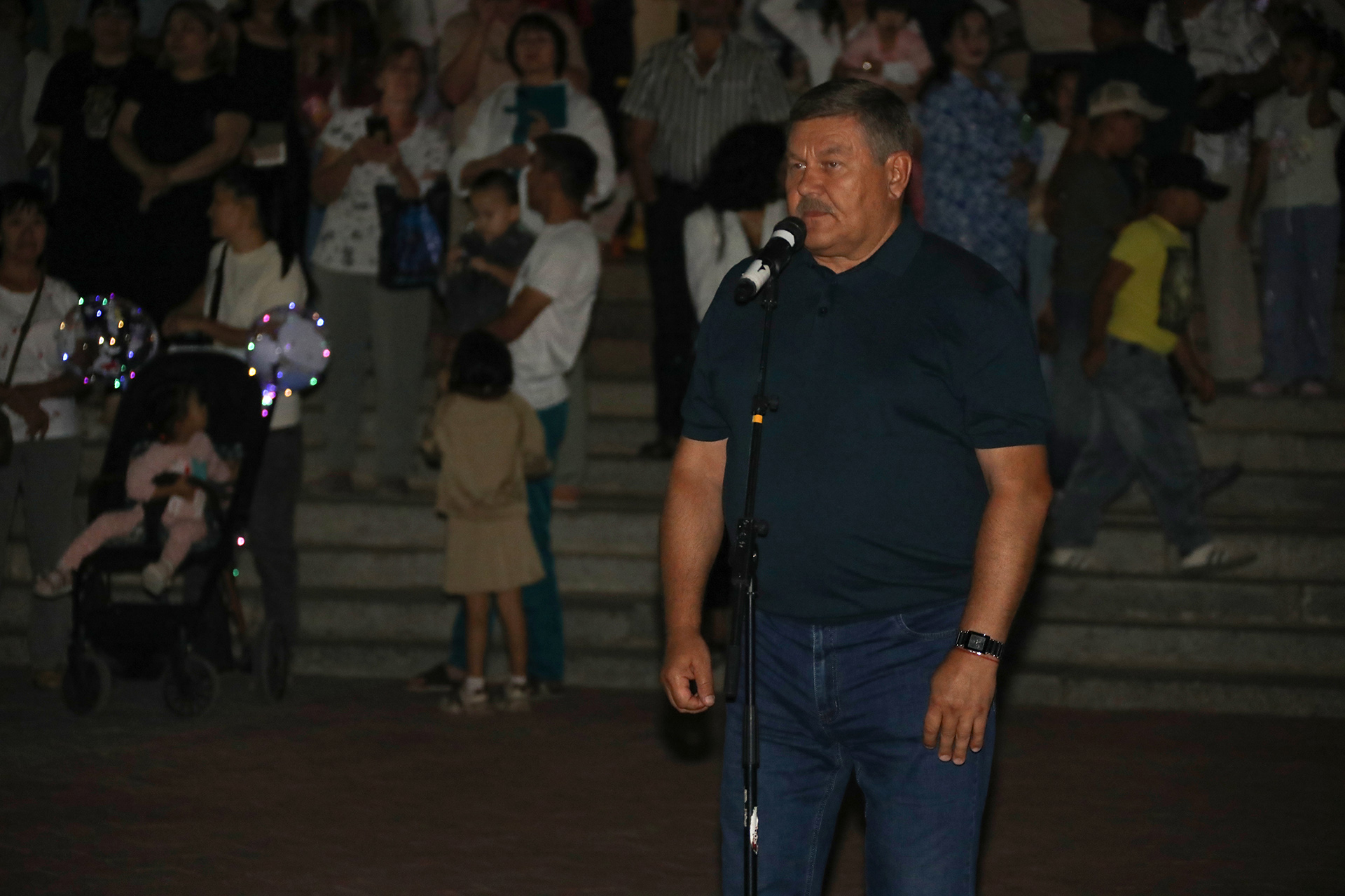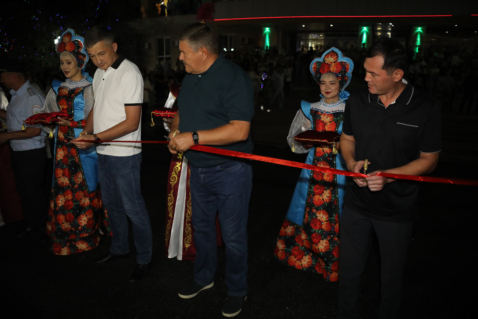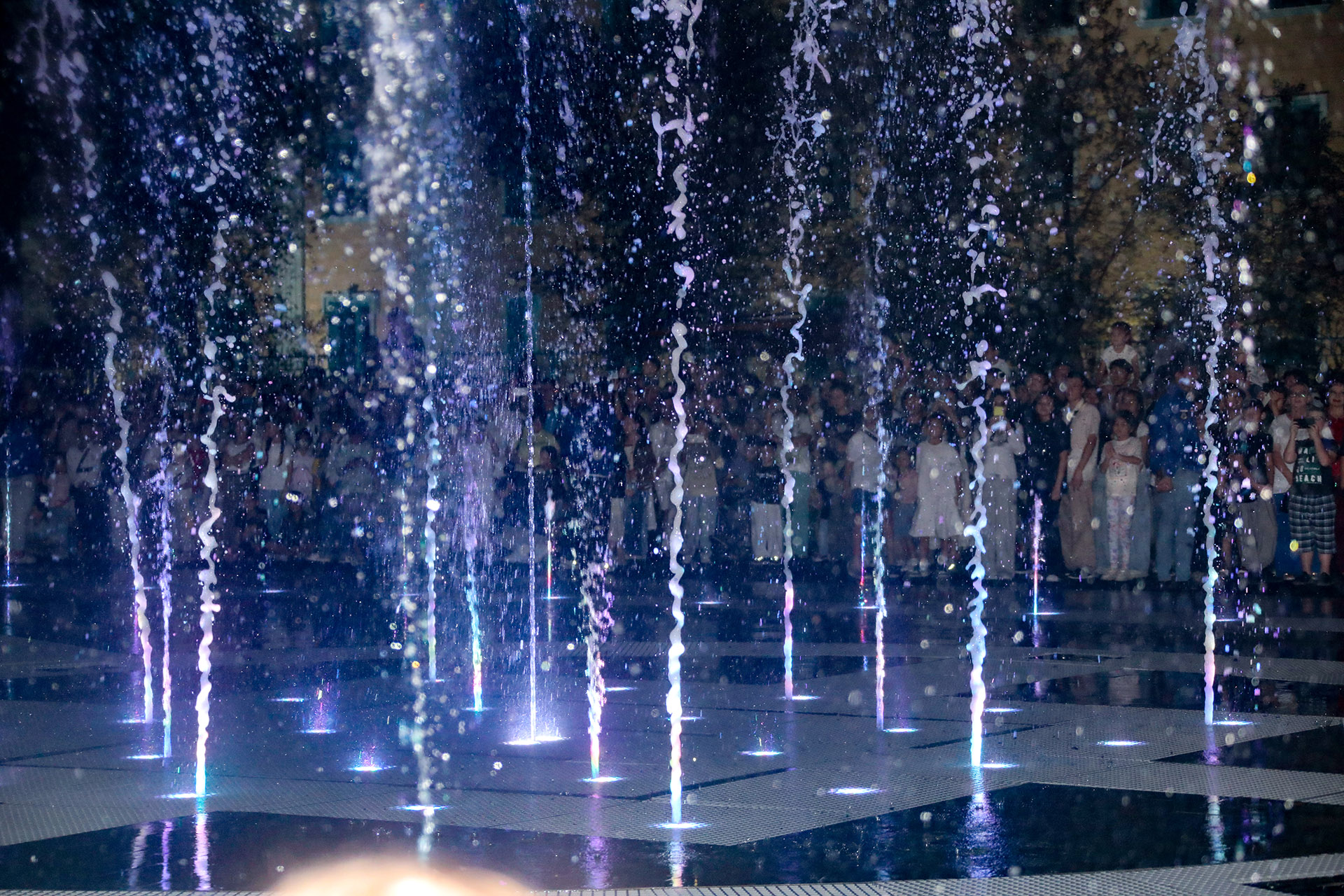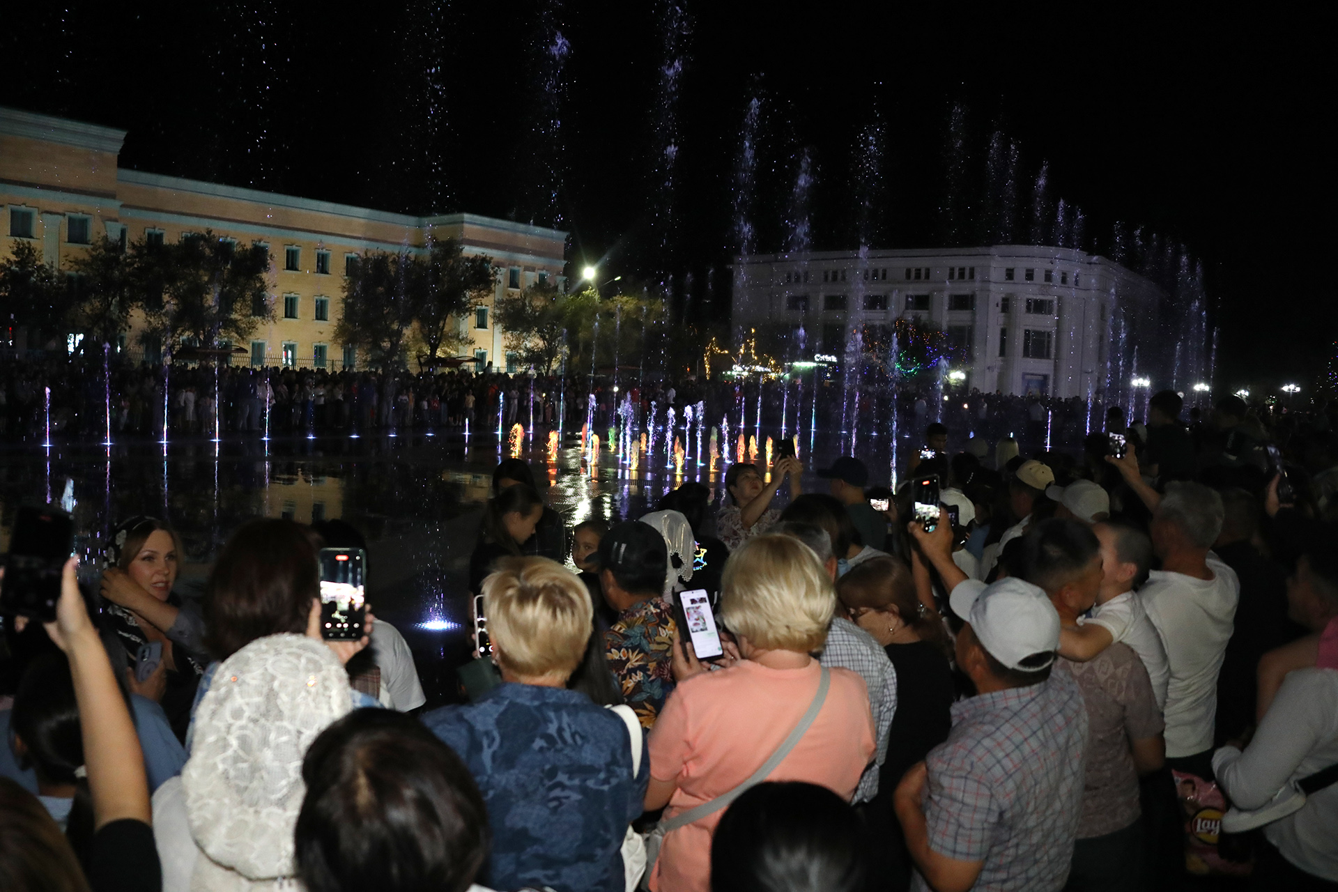 Далее состоялась традиционная церемония разрезания красной ленты, в которой приняли участие глава администрации, казахстанская сторона в лице начальника отдела по обеспечению деятельности специального представителя президента Республики Казахстан на комплексе «Байконур» Жана Шайхысламова и представители силовых структур. После этого зрителей ожидало красочное светодинамическое шоу фонтана. Под звуки популярных мелодий струи воды взмывали ввысь, переливаясь разноцветными огнями. В репертуар шоу вошли такие композиции, как «Байконур навсегда», «Трава у дома», «Сказки венского леса», «Мой Казахстан». Объединенные атмосферой праздника, взрослые и дети подпевали знакомым песням и танцевали в такт музыке.