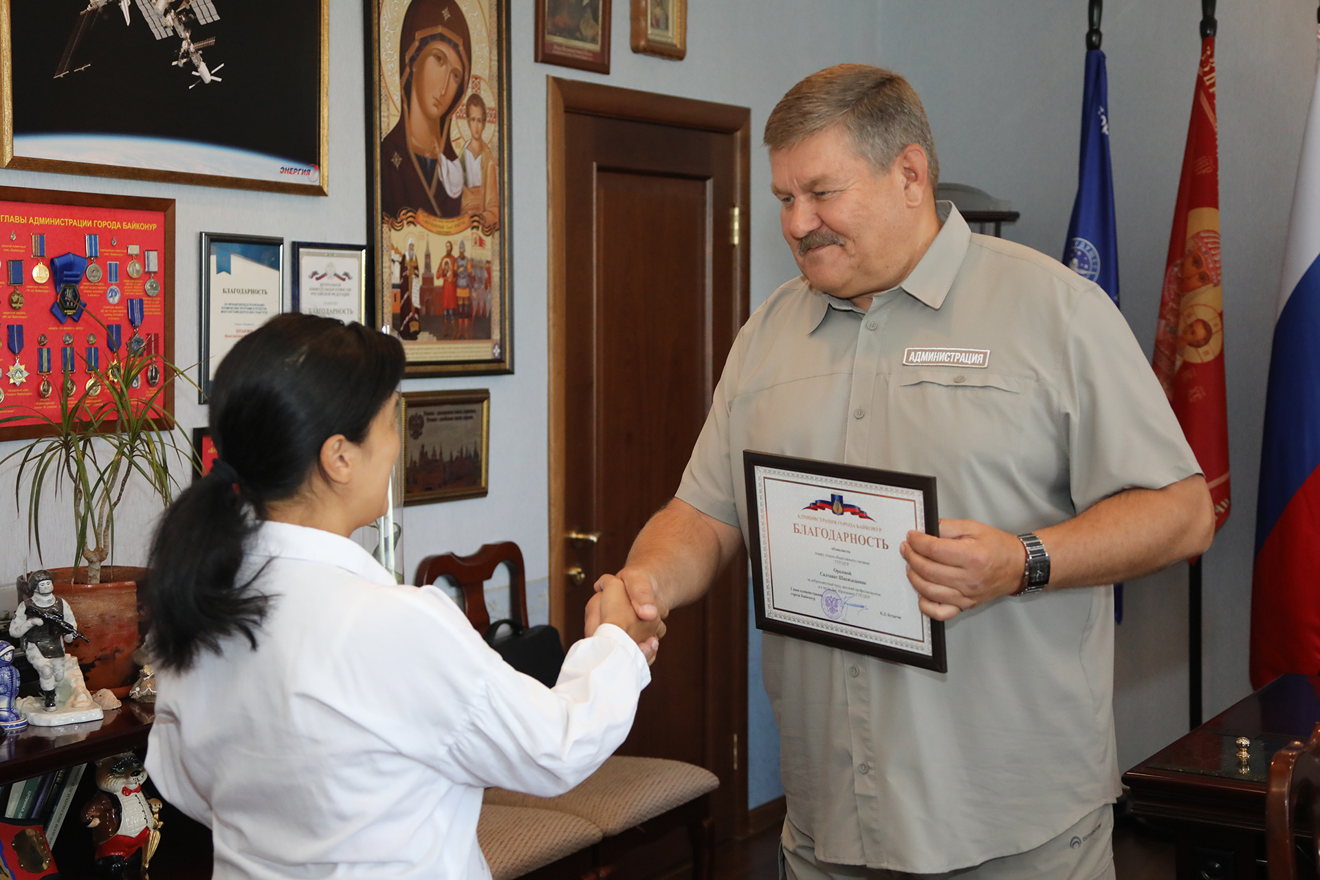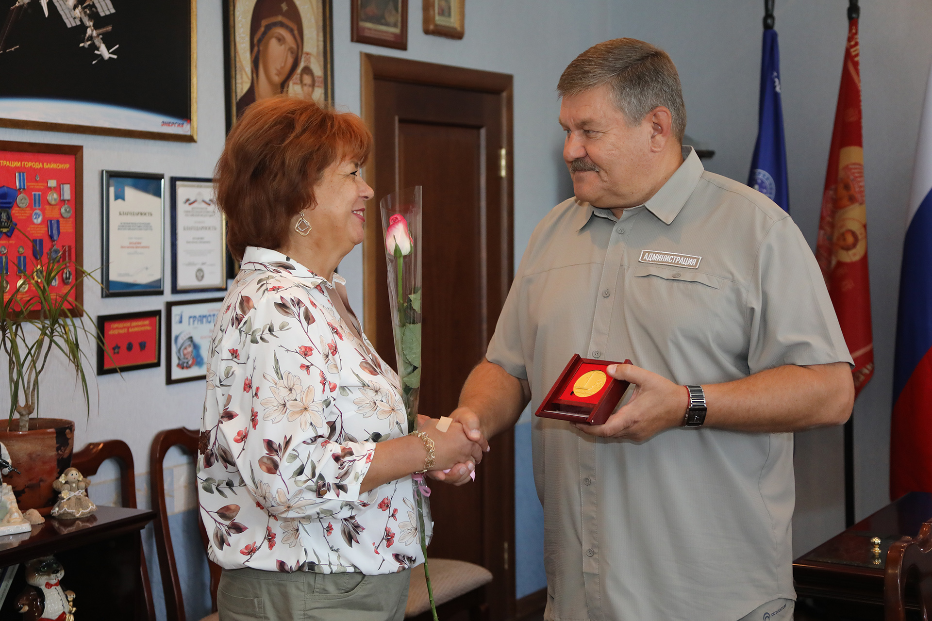 Константин Бусыгин наградил настольной медалью «Гагарин» директора Центрального рынка Андрея Донского, настольной медалью «70 лет Байконуру» заместителя директора Неллю Масленикову. Ряд работников предприятия были удостоены памятных медалей, почетных грамот и благодарностей. Медалями также были награждены индивидуальные предприниматели, осуществляющие трудовую деятельность на территории ГУП ЦУР.