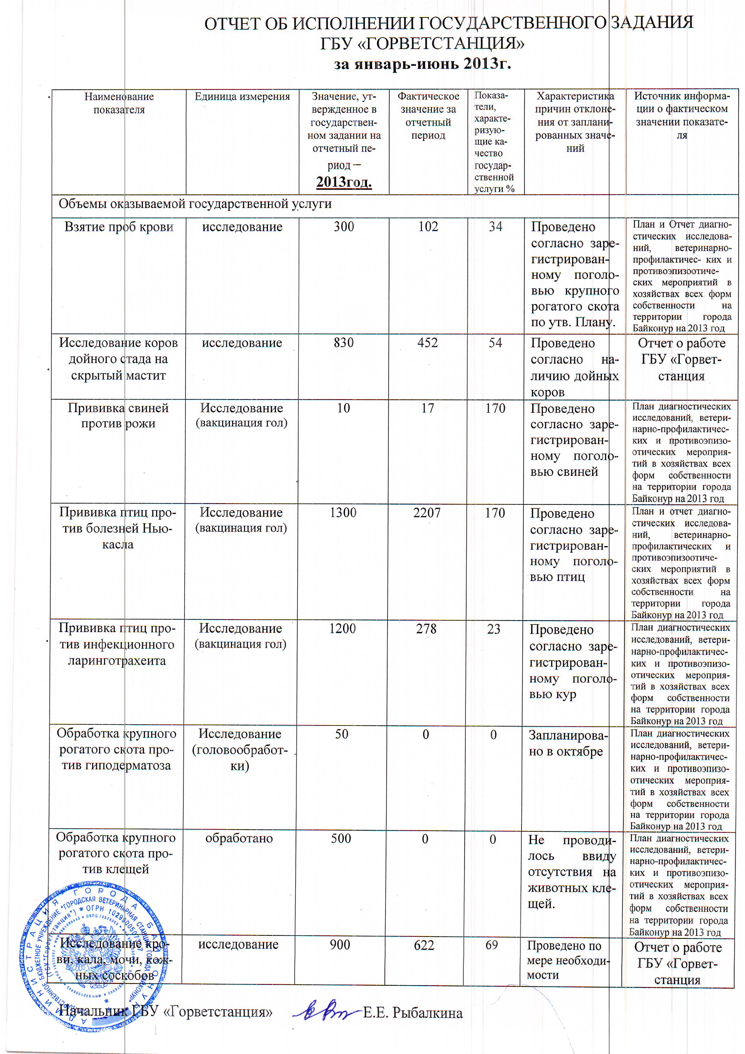 3. Отчет об исполнении государственного задания Государственного бюджетного учреждения «Горветстанция» за 6 месяцев 2013 года (скачать).