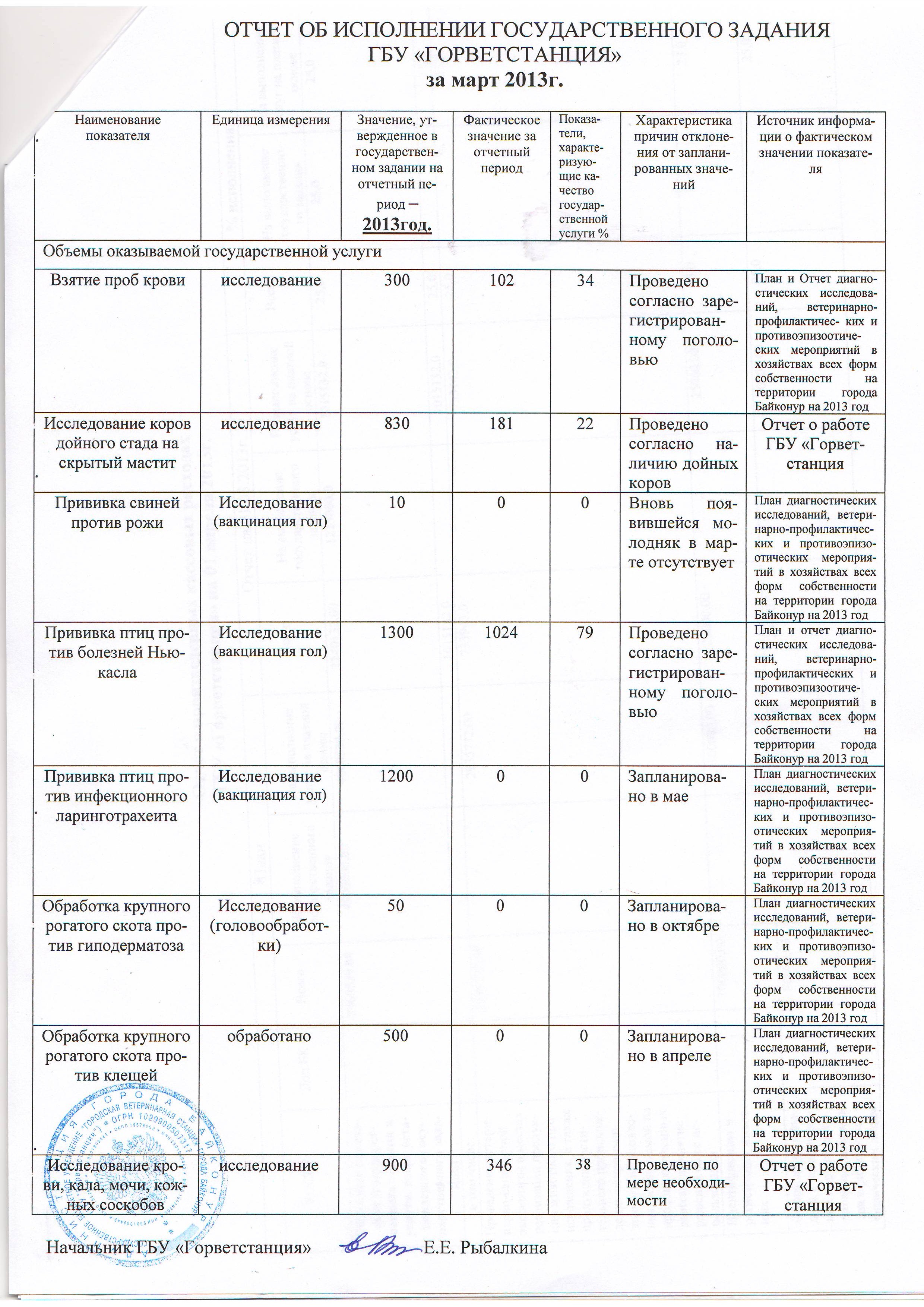 3. Отчет об исполнении государственного задания Государственного бюджетного учреждения «Горветстанция» за 1 квартал 2013 года (скачать).