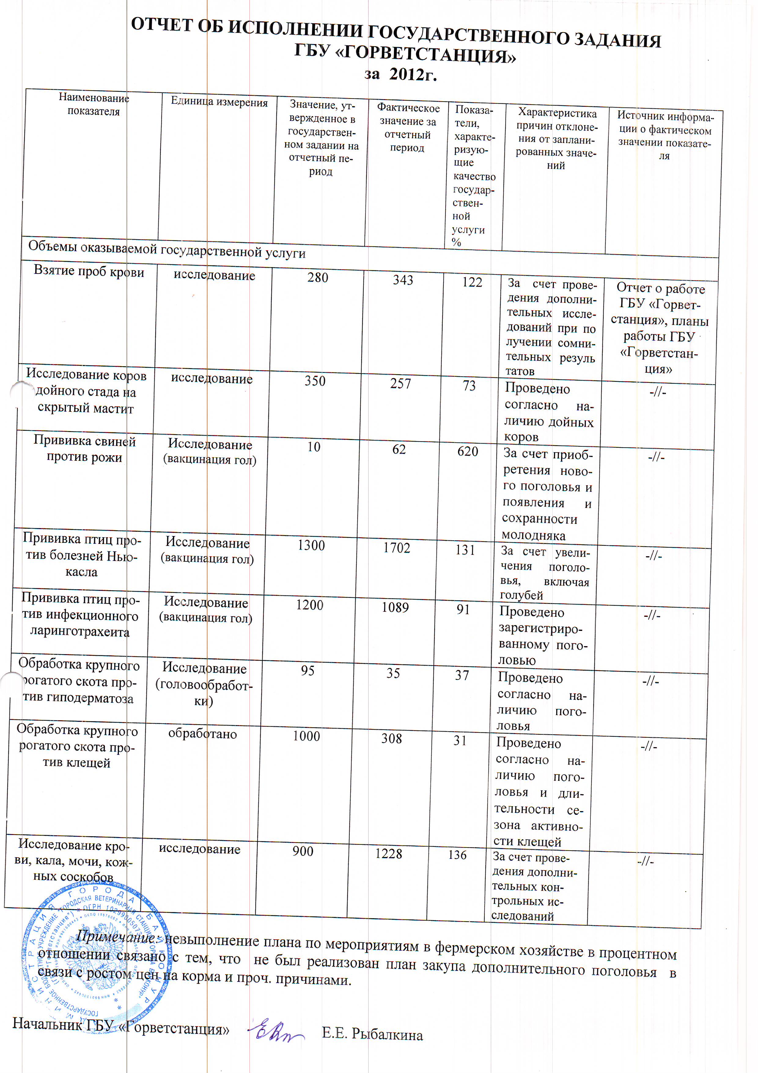 11. Отчет об исполнении государственного задания Государственного бюджетного учреждения «Горветстанция» за 2012 год (скачать).