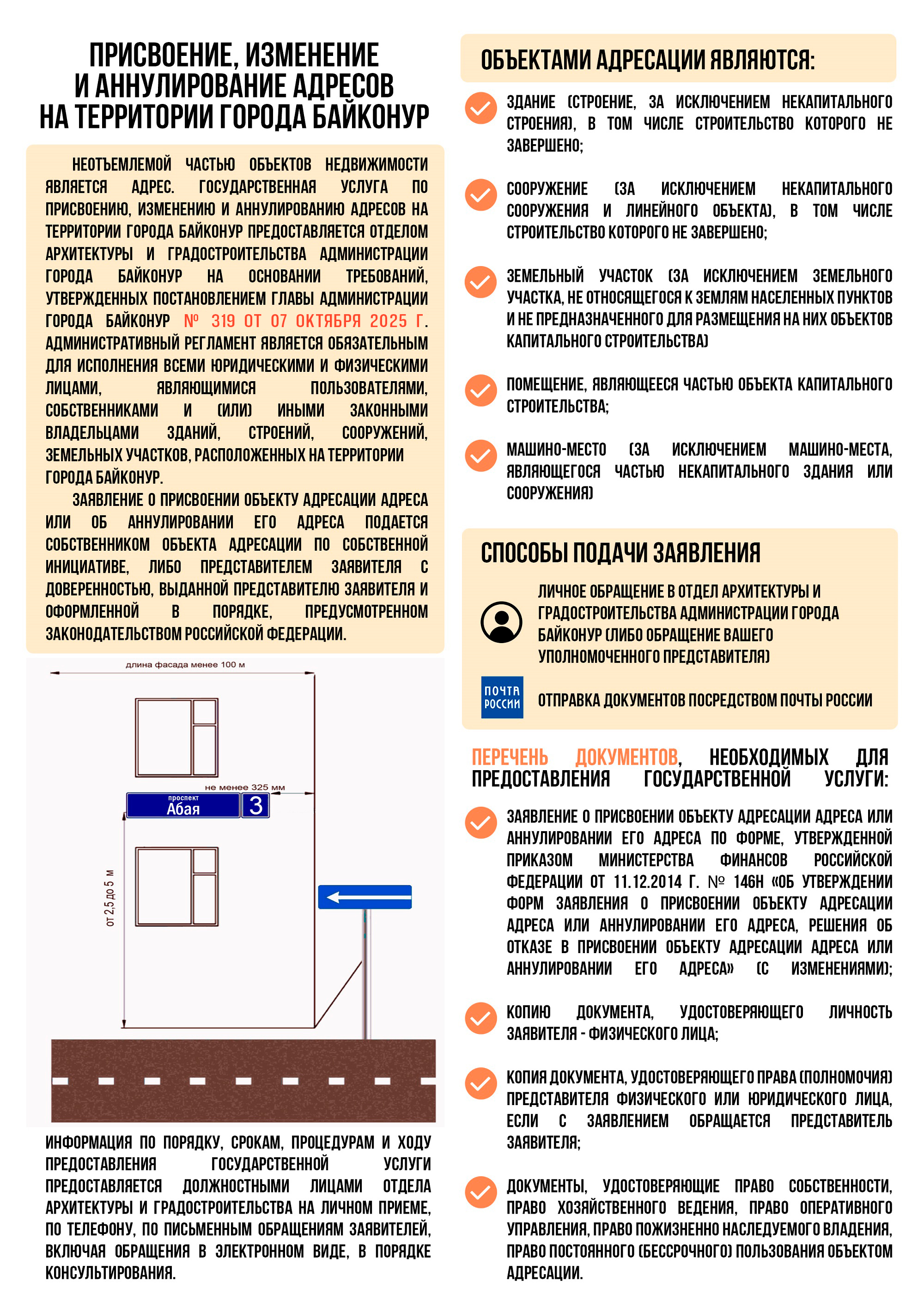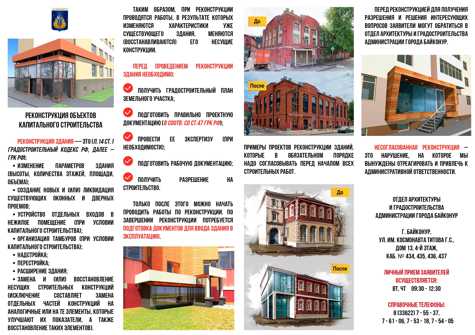 - 1. Постановление Главы администрации города Байконур от 01 ноября 2025 г. № 426 «Об утверждении Административного регламента предоставления государственной услуги по подготовке и выдаче разрешений на строительство, реконструкцию объектов капитального строительства, а также на ввод объектов в эксплуатацию на территории города Байконур» (посмотреть)